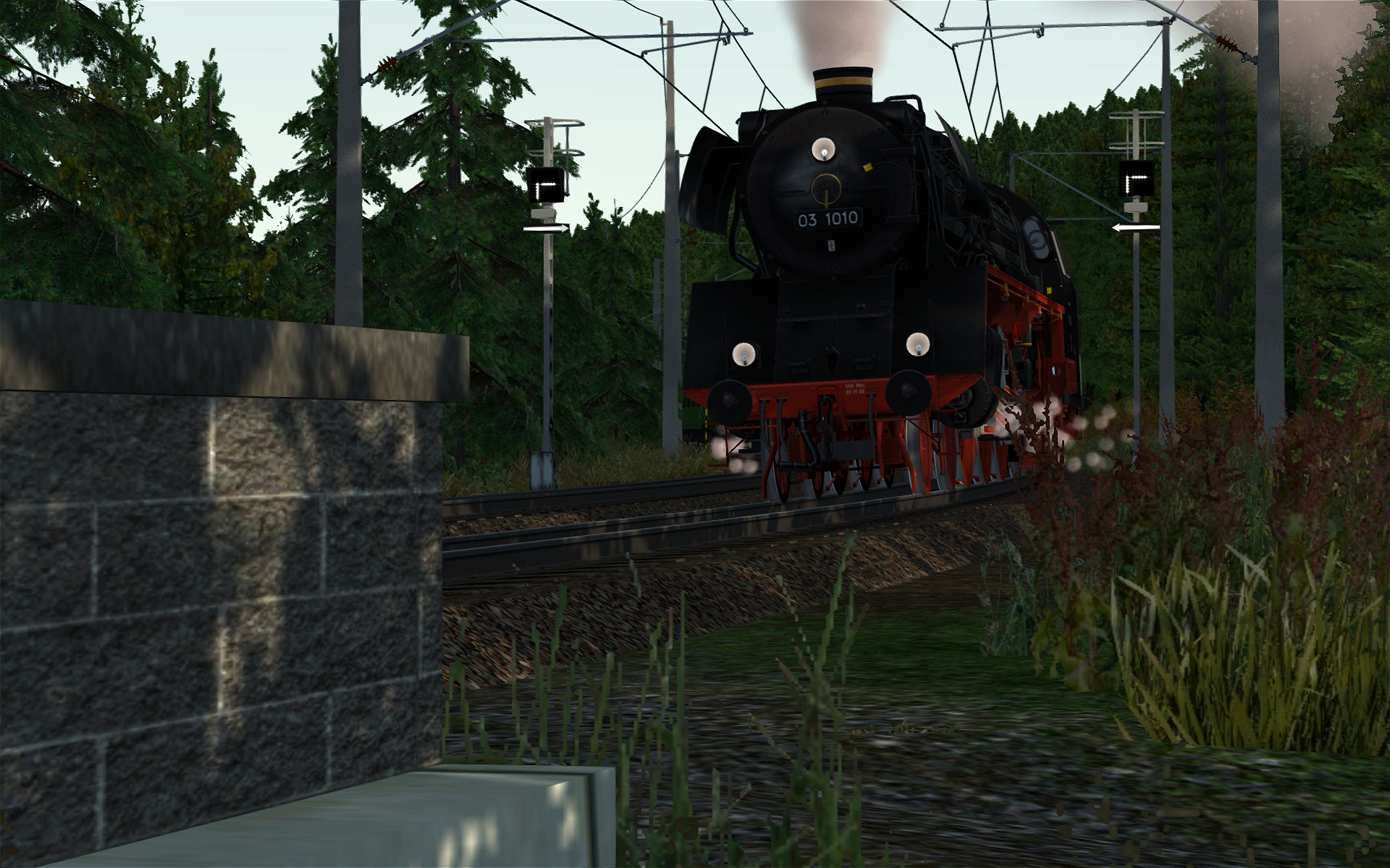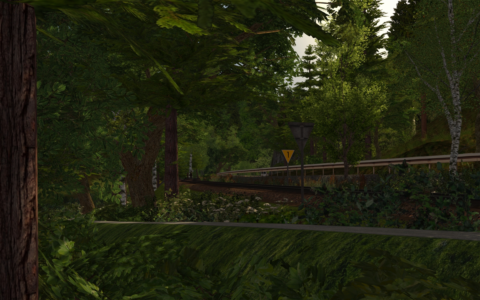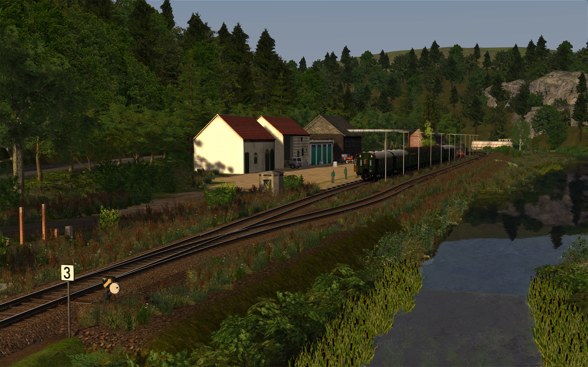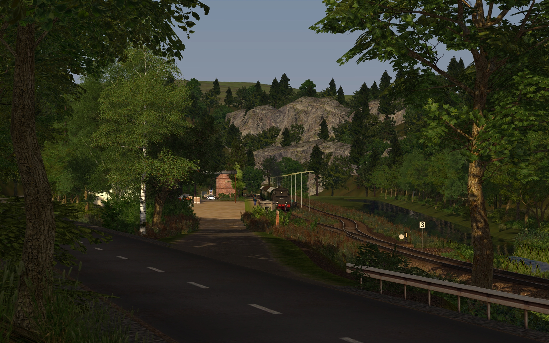 In Behringersmühle muss ich aber bereits aufpassen. Da stehen anscheinend etwas zu viel 3D-Bäume, da muss ich noch etwas experimentieren. Aber sonst ist der Bf samt Umgebung nun zu 90% fertiggestellt. Insgesamt schätze ich die Strecke zu 75% fertig ein.