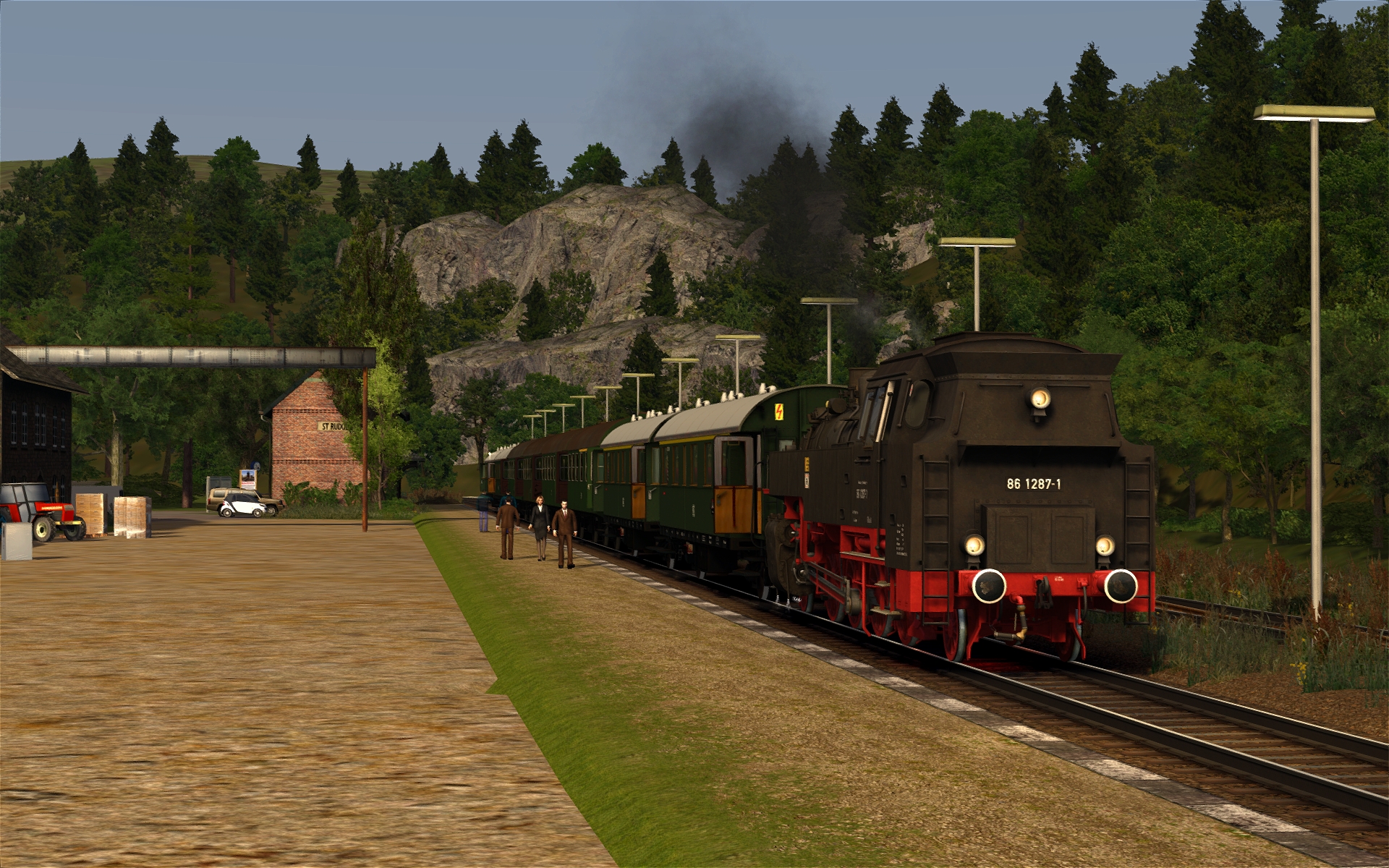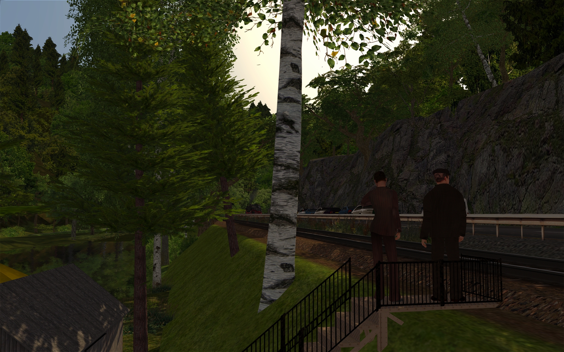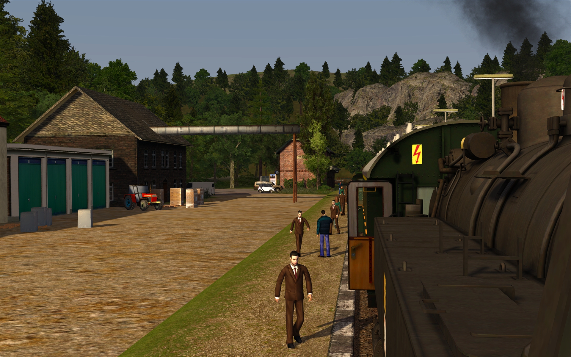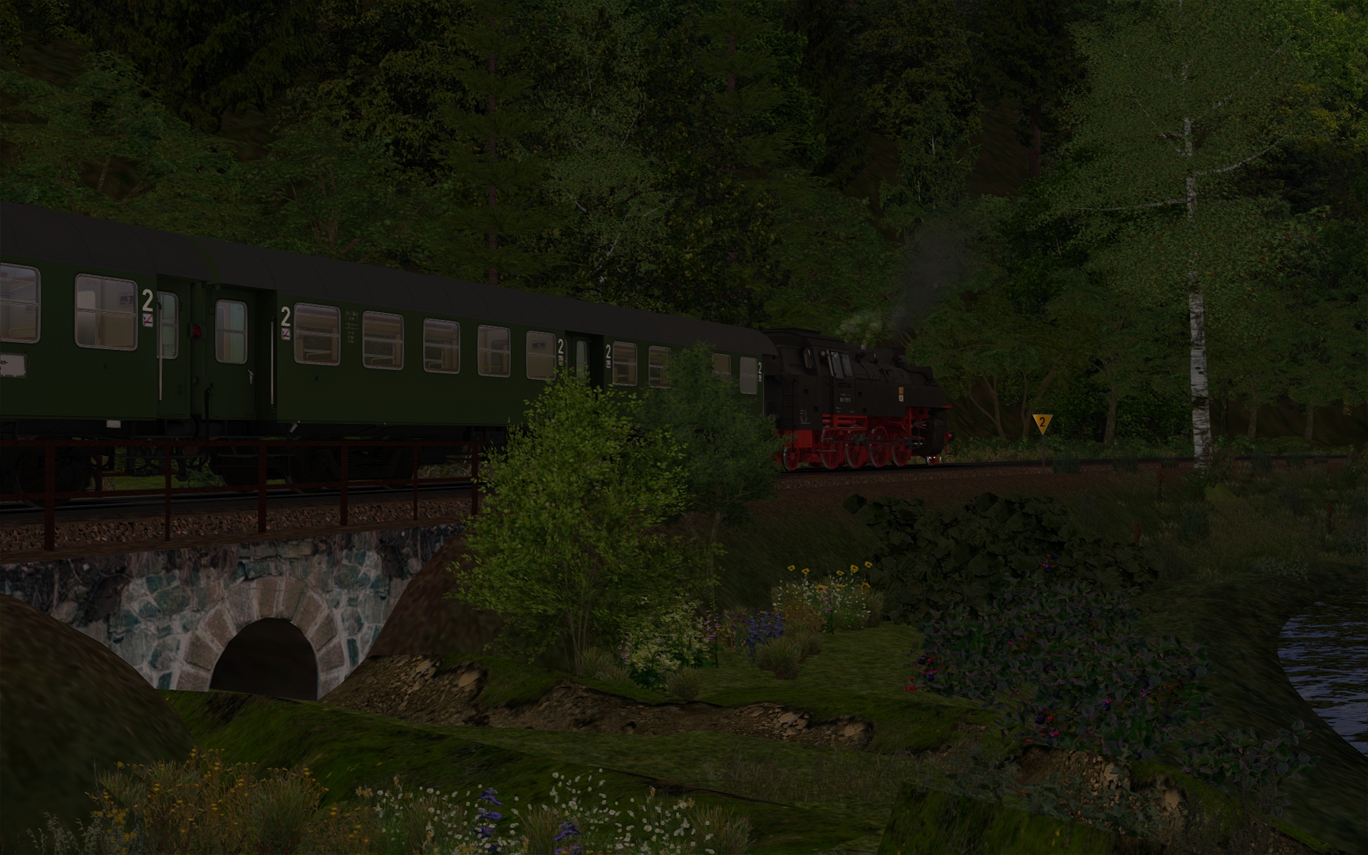 In Behringersmühle muss ich aber bereits aufpassen. Da stehen anscheinend etwas zu viel 3D-Bäume, da muss ich noch etwas experimentieren. Aber sonst ist der Bf samt Umgebung nun zu 90% fertiggestellt. Insgesamt schätze ich die Strecke zu 75% fertig ein.