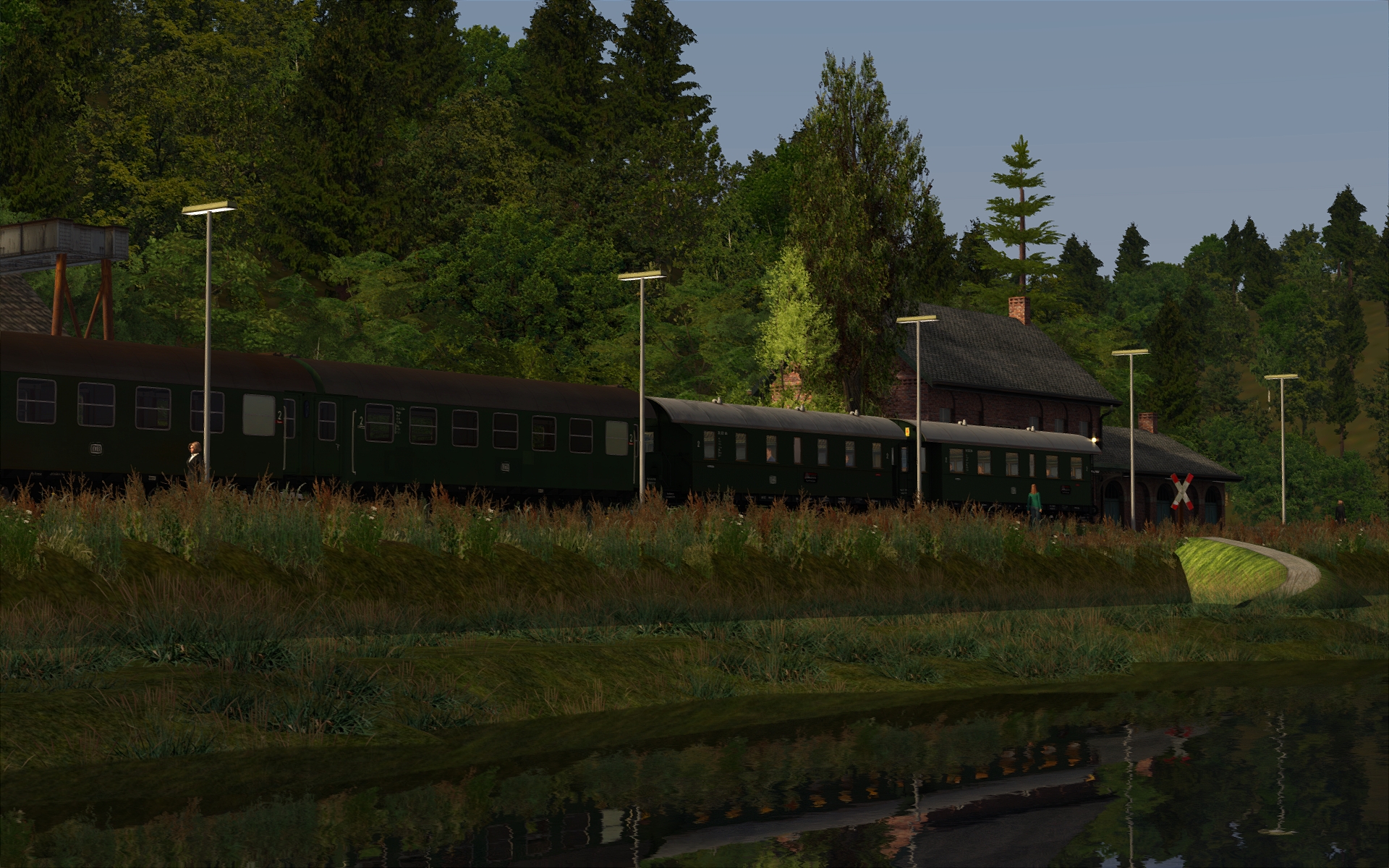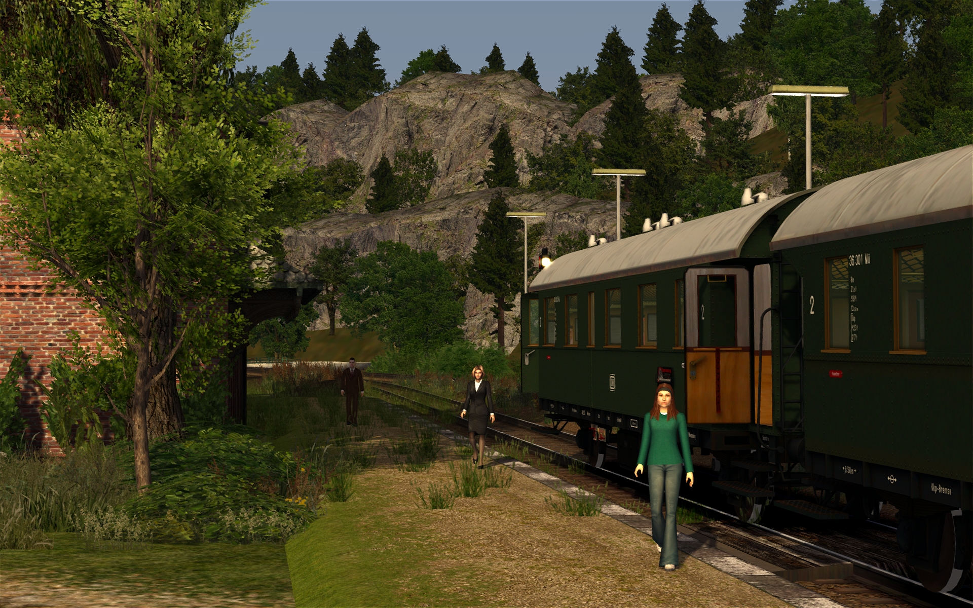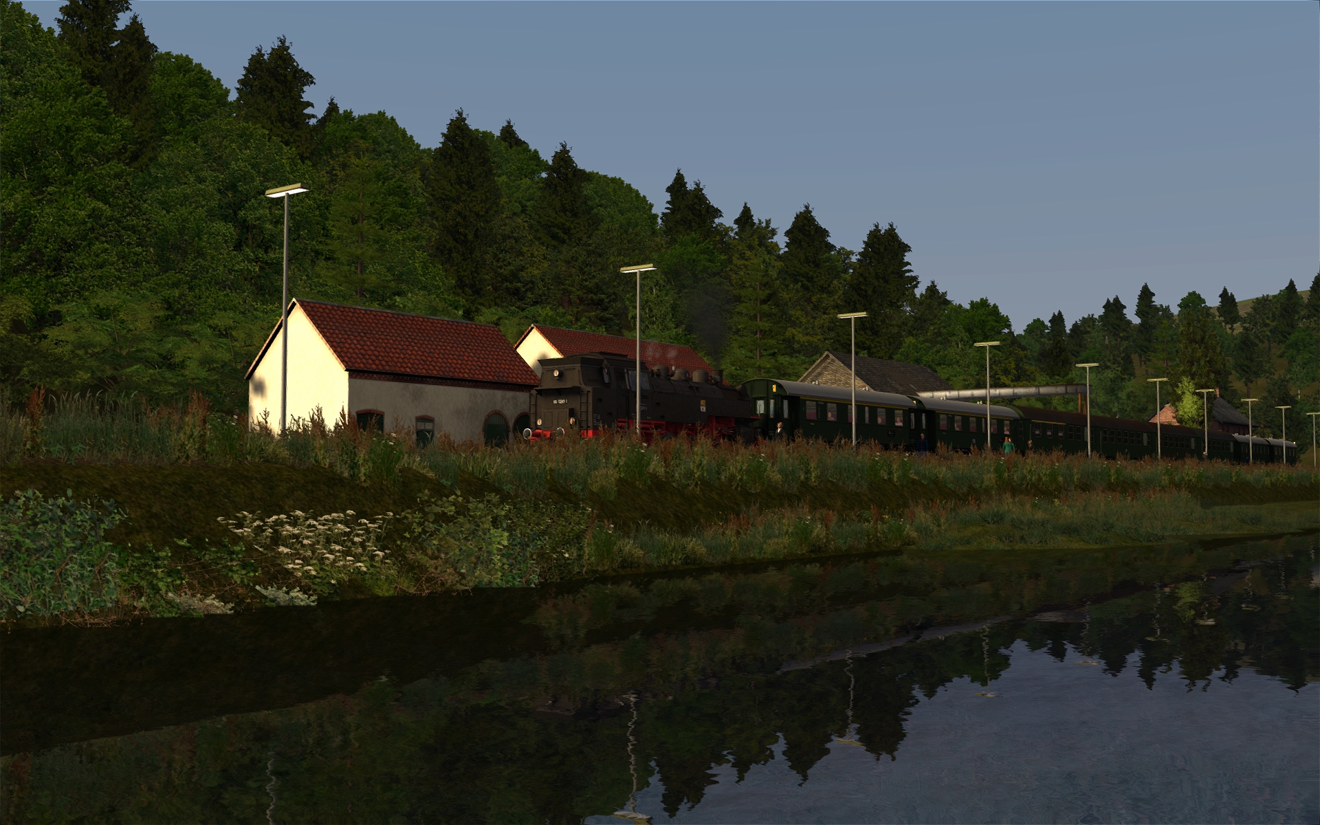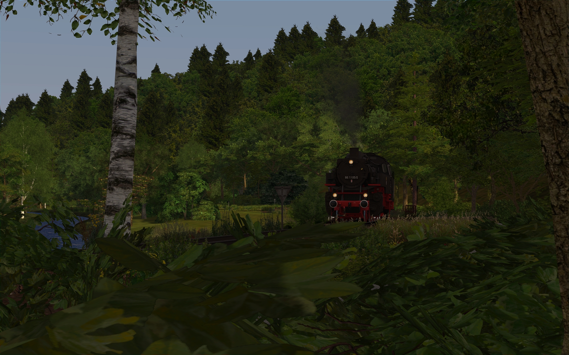 In Behringersmühle muss ich aber bereits aufpassen. Da stehen anscheinend etwas zu viel 3D-Bäume, da muss ich noch etwas experimentieren. Aber sonst ist der Bf samt Umgebung nun zu 90% fertiggestellt. Insgesamt schätze ich die Strecke zu 75% fertig ein.