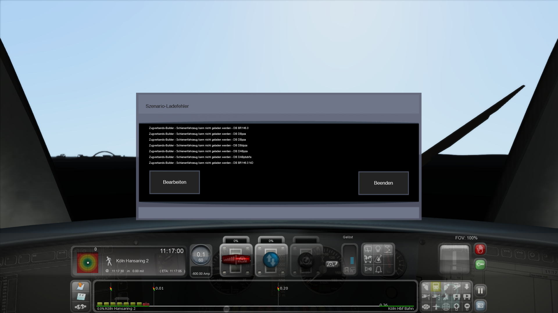 Ich bekomme dann nur teilweise einen Führerstand angezeigt, mit der Fehlermeldung; Scenario Ladefehler, Zugverbandbuilder, Schienenfahrzeug, kann nicht geladen werden.