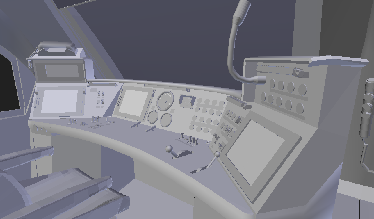 Hier ein zwischenstand zu dem Führerstand. Erstmal noch ein Bild ohne Texturen und auch natürlich noch nicht Final.