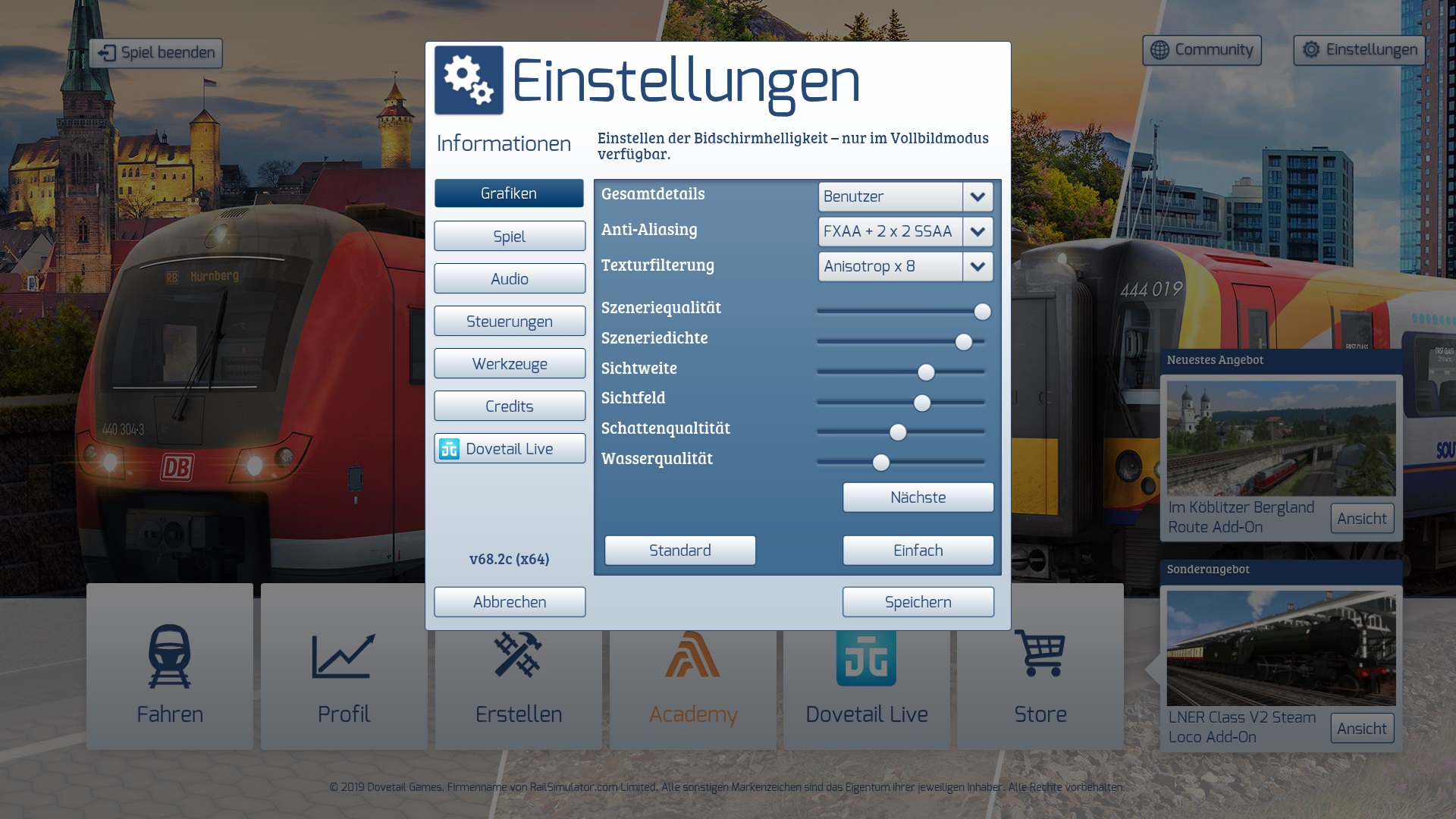 Das System kann dieses Szenario mit der aktuellen Konfiguration nicht ausführen. Wir empfehlen, entweder die Grafikeinstellung zu verringern oder zu versuchen, das Spiel in der 64-Bit-Version auszuführen. Wenn das Problem dadurch nicht gelöst wird, wenden Sie sich bitte an unsere Kundenbetreuung unter https://dovetailgames.kayako.com