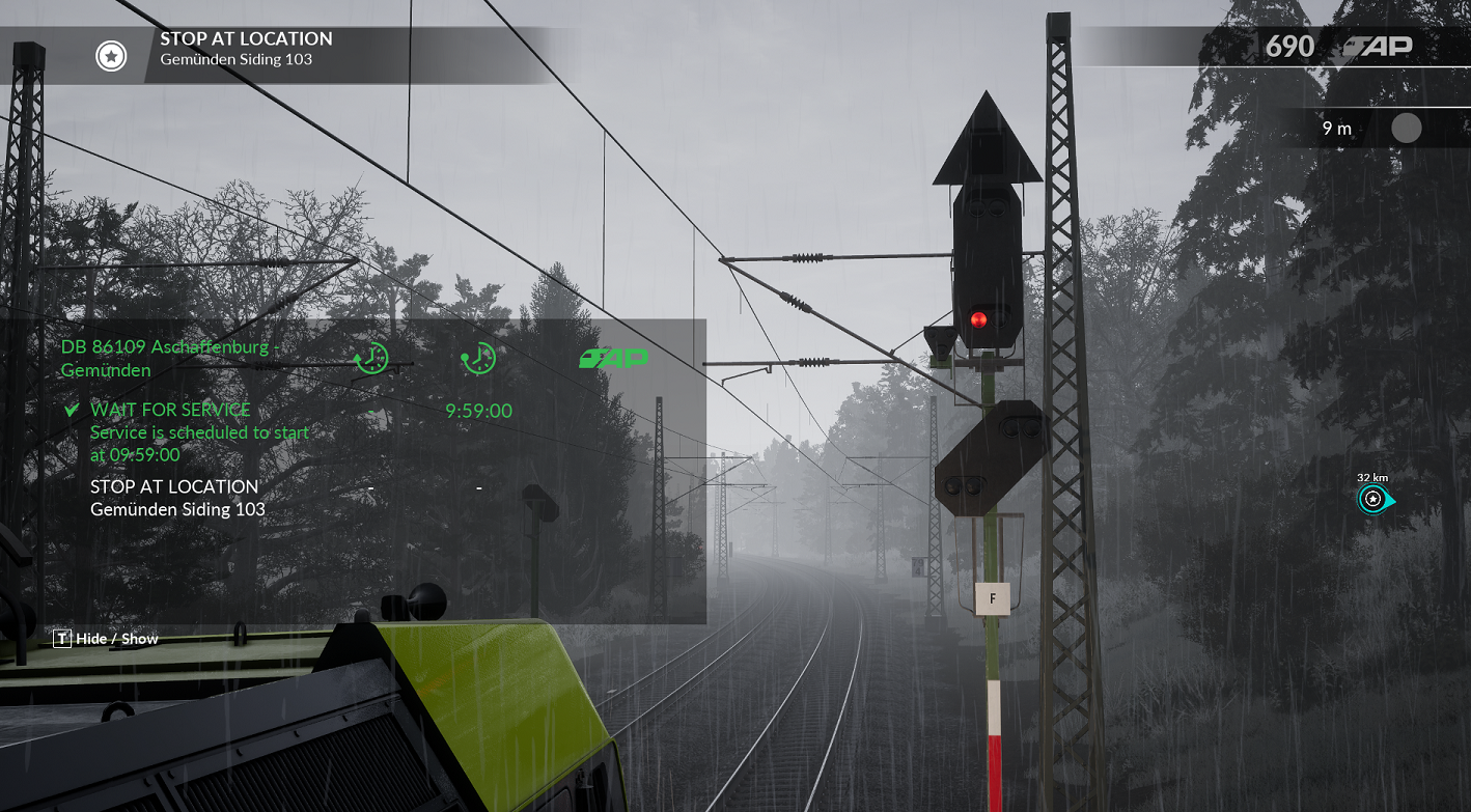 Ich hab jetzt schon mehrere Male das Szenario angemacht, aber ich komm einfach nicht weiter als zu Signal "F" bei Streckenkilometer 79,4. Dort stehe ich an einem roten Signal, dass sich weder überfahren lässt, noch durch eine nahe Weiche auf grün schalten lässt.