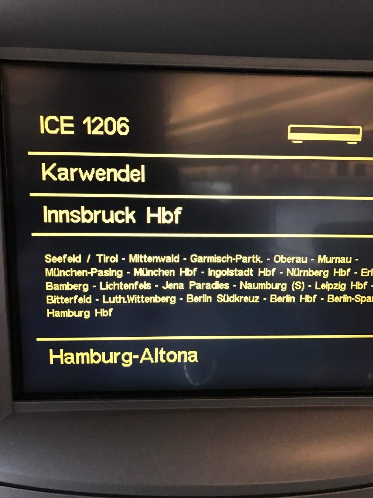 Eventuell könnten wir den ICE auf der Mittenwaldbahn zwischen Garmisch-Partenkirchen und Innsbruck Hbf bekommen da er wirklich diesen Abschnitt mit 60-80 km/h fährt und zumindest an 4 Stationen wie Seefeld hält in Richtung Innsbruck und zurück.