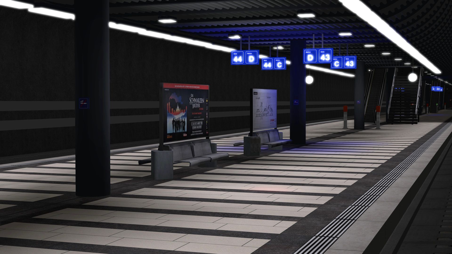 Auf den obigen, weissen Schildern sollte jeweils die Kurzbezeichnung des Bahnhofbereichs dargestellt werden - in diesem Fall die Buchstaben "MAER".