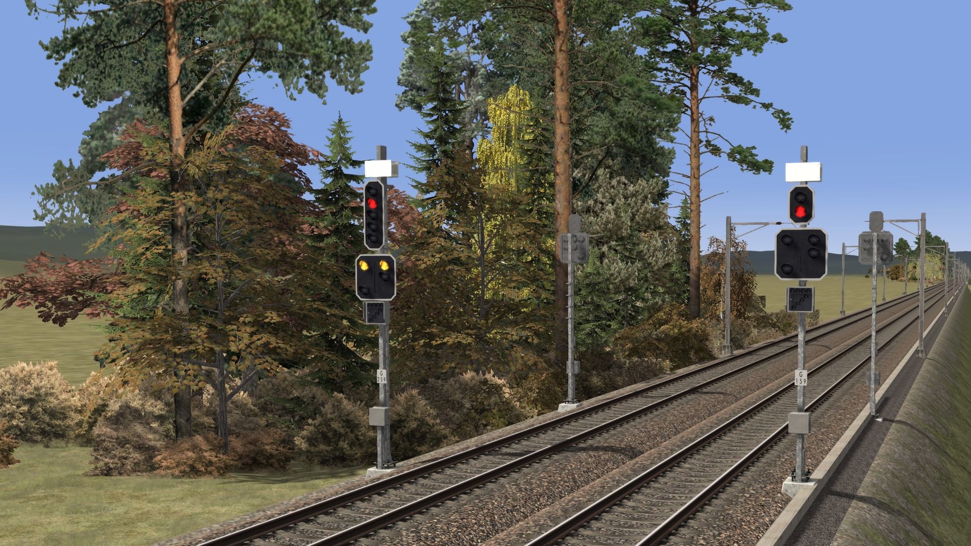 Gleichzeitig möchte ich nach dem gleichen Prinzip auch die Tafeln für Steigung und Gefälle (in Promille), Gleisnummern sowie korrekte Versionen der Schweizer Signalschilder (diejenigen im Screenshot sind falsch) erstellen. Die Signalbezeichnungen bestehen aus 1-2 Grossbuchstaben, gefolgt von 1-3 Ziffern. Bei Vorsignalen ist zudem das Sternzeichen erforderlich. Bei kombinierten Signalen wie auf dem Screenshot haben die Schilder 2 Zeilen für das Hauptsignal bzw. das Vorsignal.