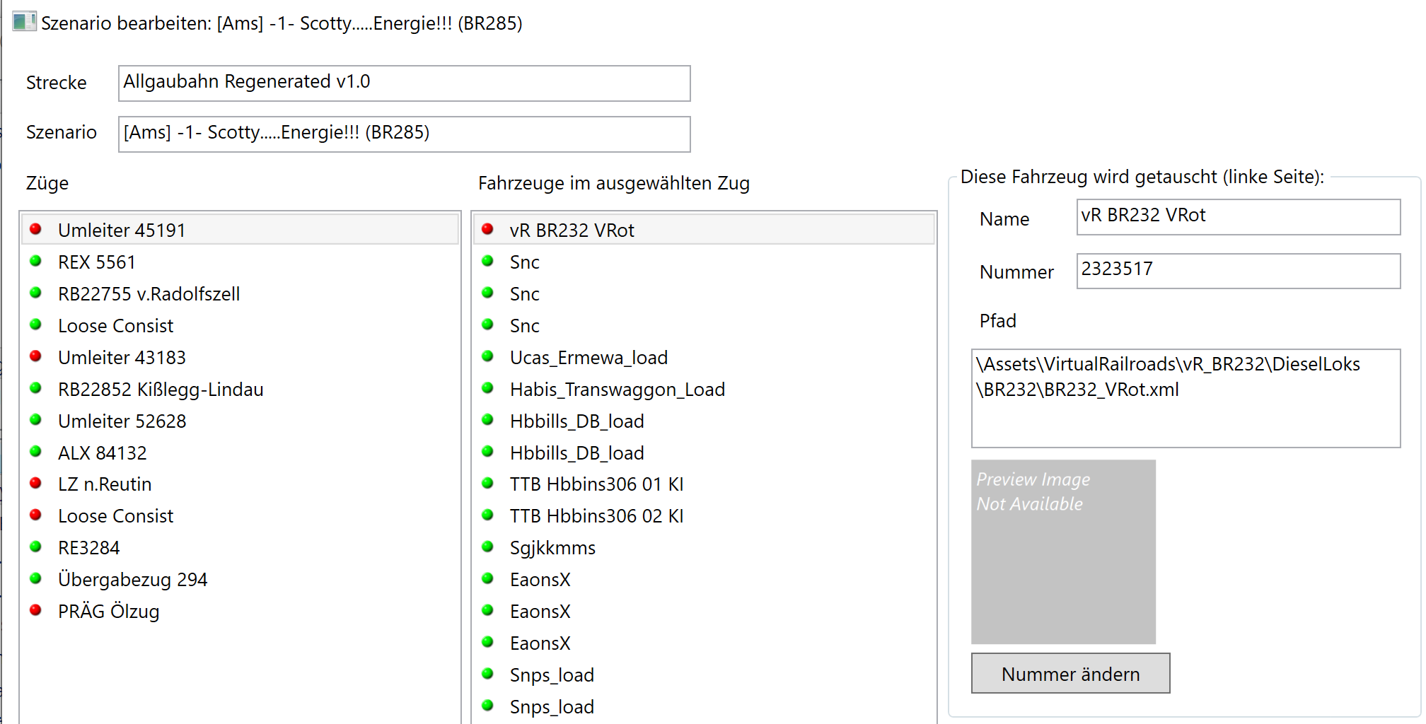 Das Programm ist top, wenn es jetzt vielleicht auch noch irgendwann Fahrzeuge um 180° drehen könnte, oder einzelne Fahrzeuge löschen könnte (ohne das wie bei RWTools meistens gleich komplette Zugverbände fehlen) dann wäre es aber sowas von top.