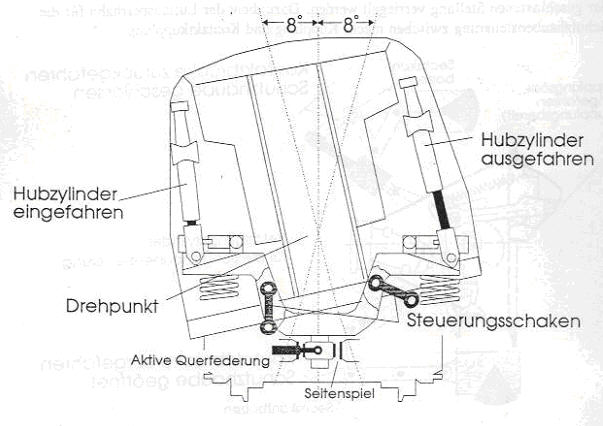 Ja beim 612er ist das so und beim 611er weil die haben eine anderen Neigetechnik der 610 neigt sich mit Hydraulikstanken. Die Idee war von Fiat Ferroviaria die die Neigetechnik im Italischen Pendolino verbaut hatten. Die deutsche Bundesbahn hat damls also auf diesem Prinzip (siehe Bild) 20 typen basierend auf der br 628 bestellt. Bildquelle: http://vt610.de/pendo/technik.html Umso mit den Verkehr im Pegnitztal beschleunigen.