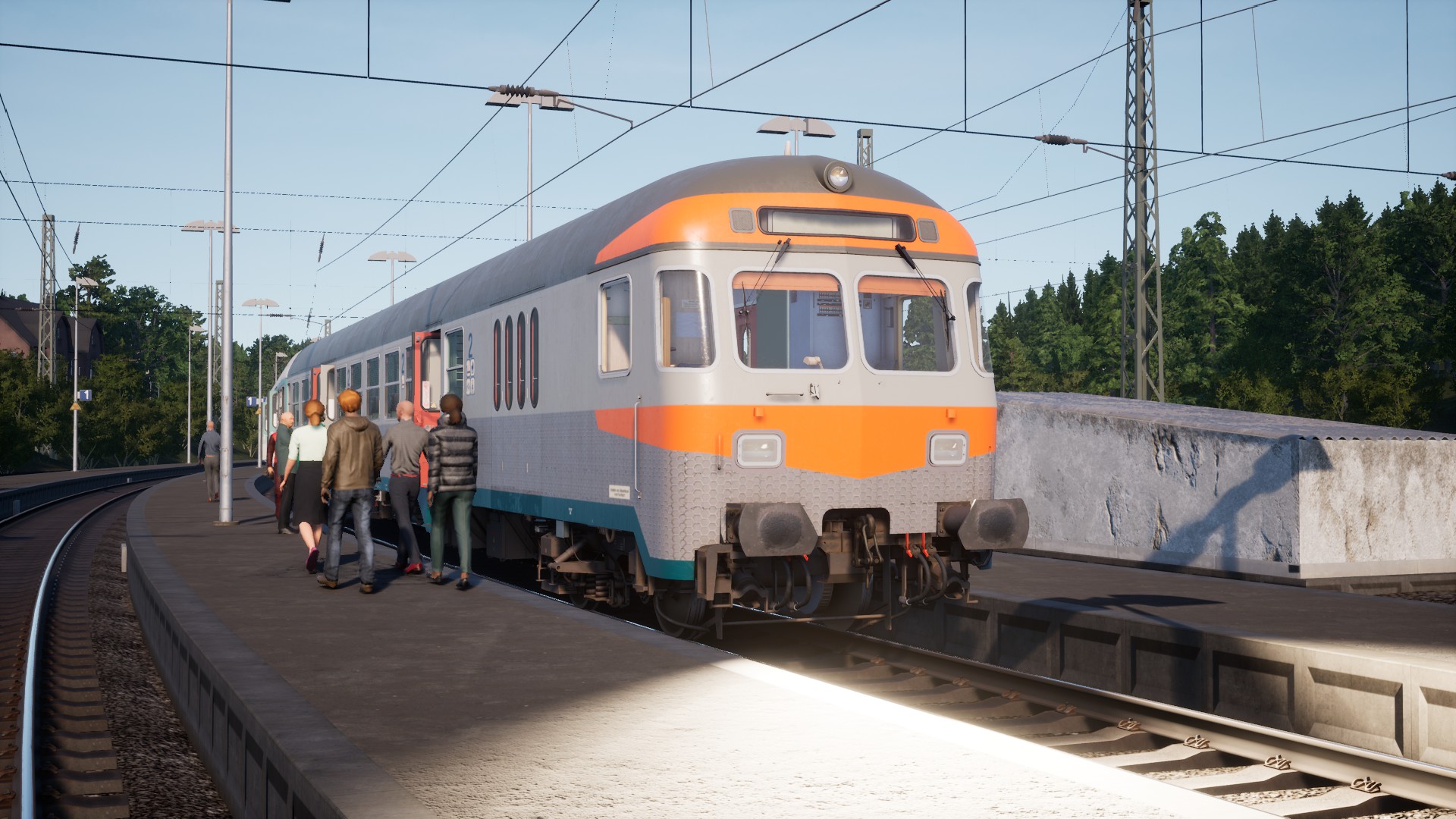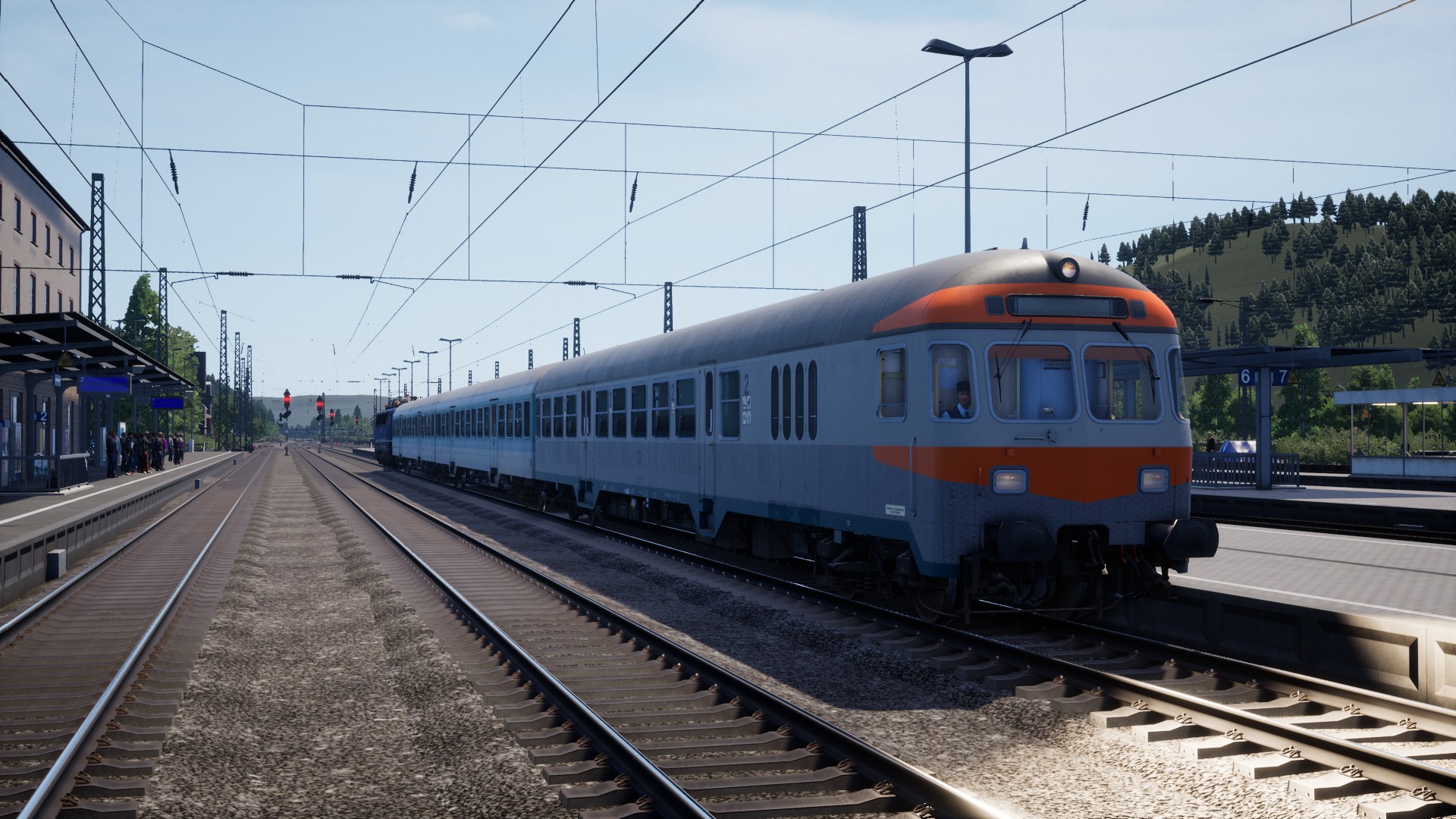 Auf Gleis 4 steht der N Wagen Zug aus den 80ern.