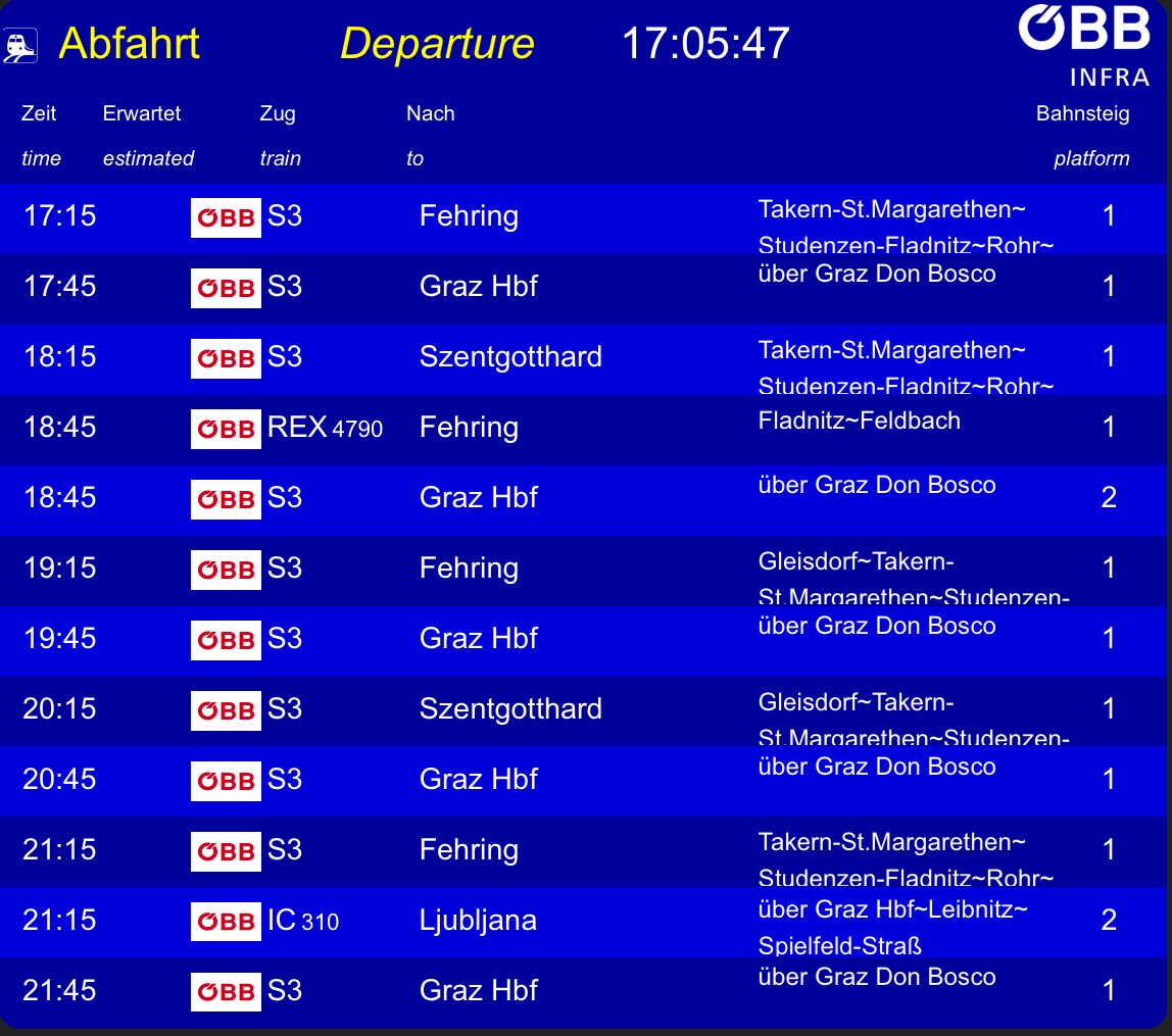 Sobald meine Hardware für den ITX PC angekommen sind was nur rein für TSC ist. Mach ich dann Bahnsteiganzeigen und Bildschirm Repaints für jeden Bahnhof auf dieser Strecke. Aber ich mach’s nicht für jede Uhrzeit des wäre zumühsam dann.