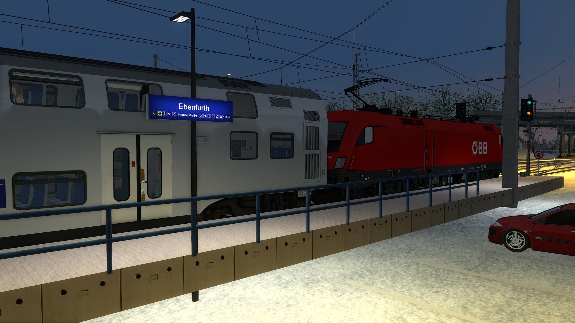 I kann euch jetzt mal sagen das es für die Strecke nur eine Payware Strecke gebraucht wird. Des ist halt die Nordbahn sonst ist der Rest alles nur Freeware Add-ons. Die RSSLO und RWA Bahnsteige werden ausgetauscht gegen die von RelaxXio selbstgemachte Bahnsteige. Gemacht ist jetzt mal der Streckenabschnitt Neusiedl am See - Wulkaprodersdorf, Signale wurden verbessert von RelaxXio und Oberleitung werden noch zwischen Purbach und Jois, Bahnhof Neusiedl am See und Wulkaprodersdorf fertig gemacht von mir dann. Des ist zurzeit der Stand. Ausgestaltung kommt nach dem die Oberleitung fertig sind.