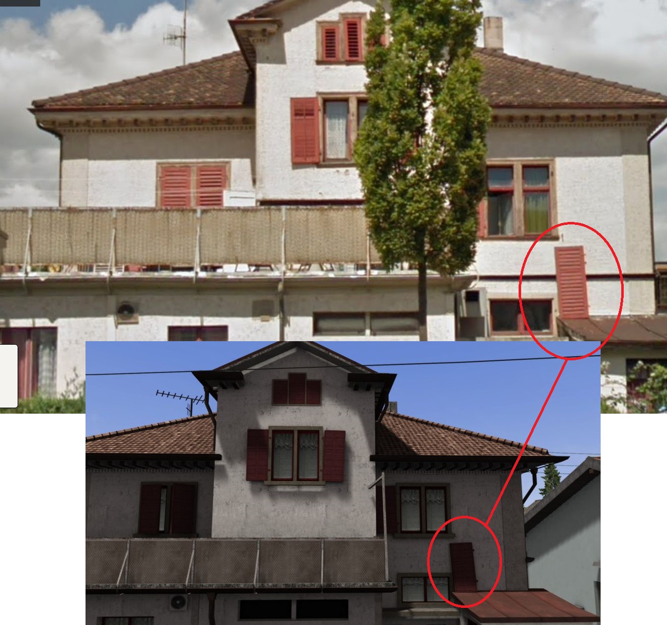 Ansonsten ist Szenerie aber echt gut umgesetzt und man hat sich bei den Objekten viel Mühe gegeben. Ich habe unten einen Vergleich eines Hauses gemacht. Einmal ein Screenshot aus dem TS und einmal ein Screenshot aus Google-Maps-Streetview. Da hat man selbst den kaputten Fensterladen nachgebildet. Wow!