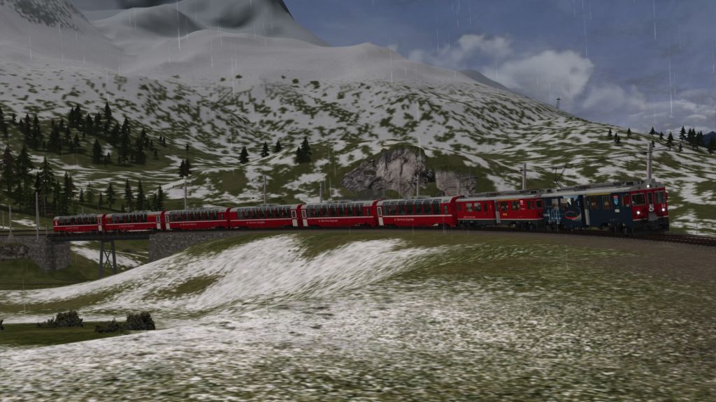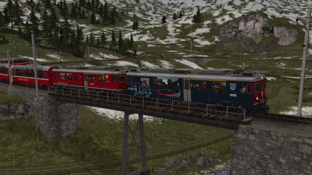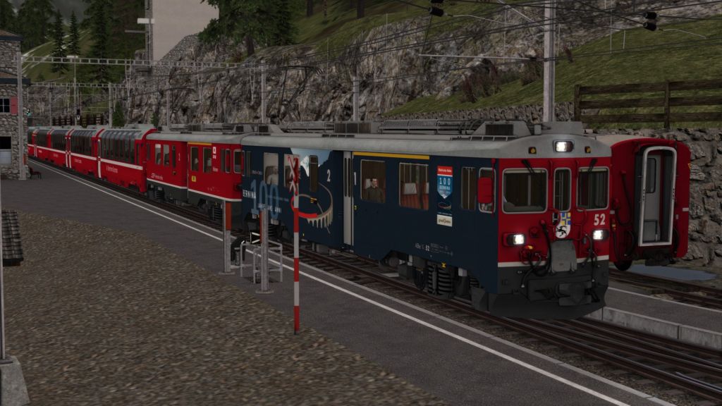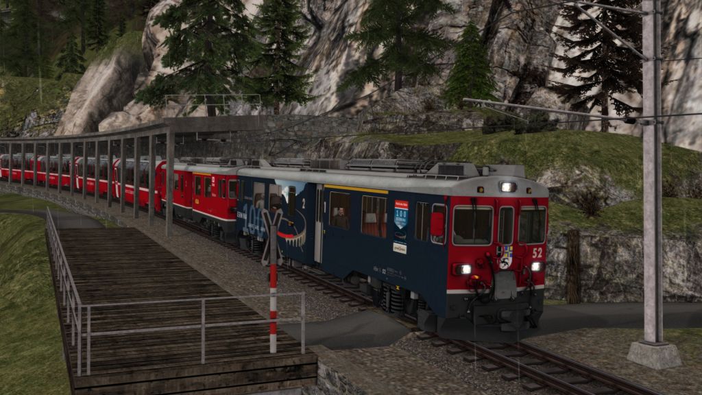 Was ich nach wie vor bei den Rivet-Games-Stecken nicht sicher heraus gefunden habe ist, wie man in Szenarien gescheite Zugkreuzungen hinbekommt, also dass man selber auch mal 3-4min vor einem roten Signal steht und auf den Gegenzug wartet. Und nicht (wie auch bei den mitgelieferten Szenarien) der Gegenzug schon im Bahnhof steht, wenn man ankommt. (Und dann auch nicht mehr weiterfährt, weil der KI im Kreuzungsbahnhof endet). Das Problem hab ich bei meinen für die RhB-Strecken erstellten Szenarien aber teilweise auch schon gehabt.