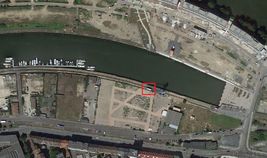 Auf dem Bild sehen wir einen verbliebenen Güterwaggon einer 2002/2003 eingestellten Hafenbahn an einem Deutschen-Flusshafen. Letzte Fahrt auf dieser Bahn war 2004. Um welche Hafenbahn handelt es sich? Auch der Güterhafen ist - bis auf eine Ausnahme - Geschichte, wie man auf dem Bild auch schon erahnen kann, wird er mit Wohnungen überbaut.