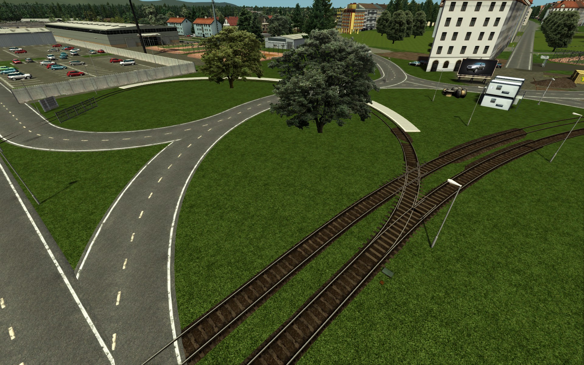 Fizzbin has done a great work in his fictional stramstop Alb 1, 2 + 3, probably named after the river that suppose to flow past it. I have searched the whole of Google Earth and I cannot find a tramstop or "transit stop" named Alb. This is not the only "fiktiv" stop on fizzbin's route. However, they do add a little something to it and this is where 'creative license' comes in. I don't know why transit stops/platforms are laid down before the tracks, maybe it is just planning and marking for further production.