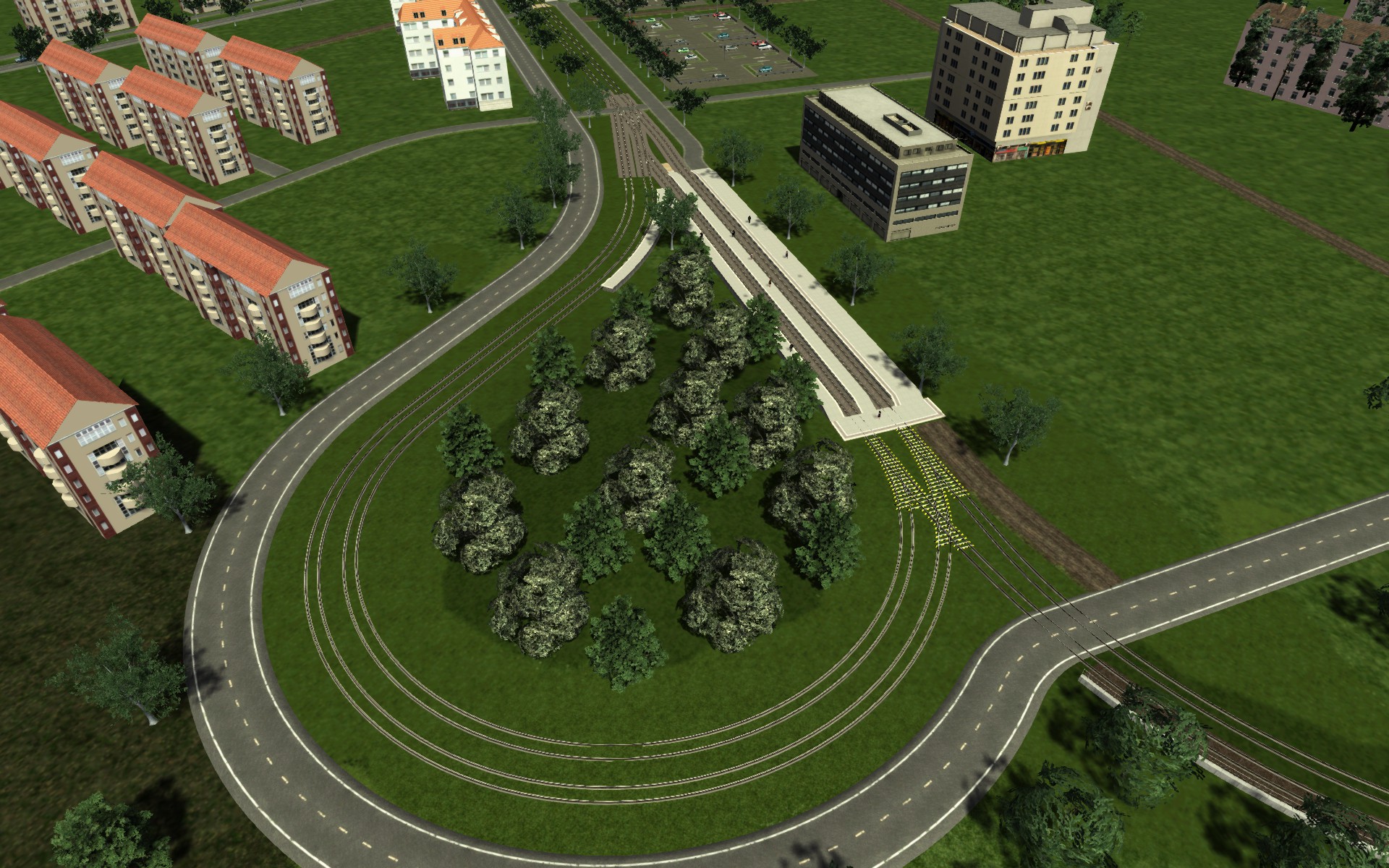 The route is fictitious, but is widely based on the Karlsruhe tram/stadtbahn (low-floor tram) system and fizzbin keeps close to it as possible with artistic license. Best of all - it's free!Unlike the real thing, the route is not really for low-floor trams. This is down to the author wanting to use trams from the U-Bahn Farnkfurt am Main V2 add-on. However, if you can lower the platforms in World Edit then you can perhaps use a yellow low-floor tram that is available for free on this site. It takes up far too much time to raise the platforms just to lower them again for a free tram that isn't as good as the commercial ones from Just Trains, unless you want to copy the route and have two routes for two systems - I wish you well!
