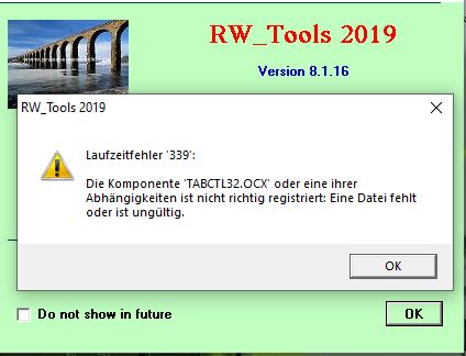 Ich habe RW Tools neu installiert und bekomme immer folgende Fehlermeldung: