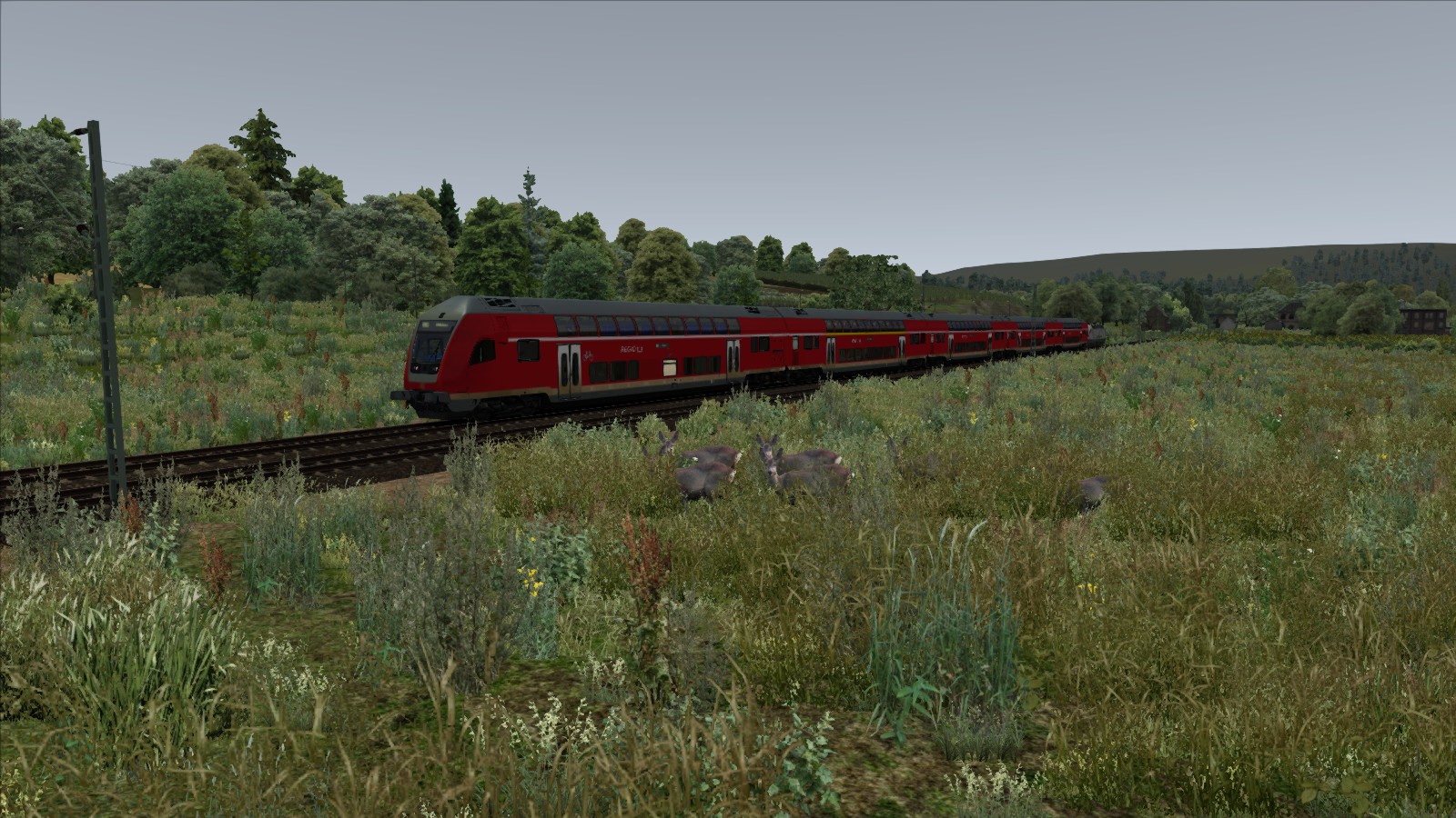 Ein RE auf der Steigung von St. Rudolf nach Wildau. Die Natur zeigt auch ihre versteckte schöne Seite. Ein paar Rehe haben sich auf das Bild verirrt.
