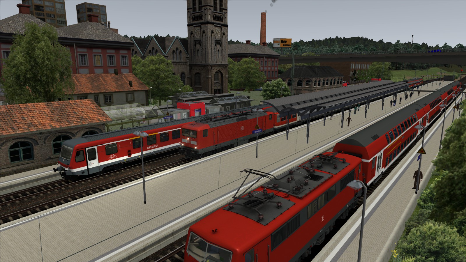 Alle 4 Gleise liegen. Die Bahnsteige und Gebäude ebenfalls. Wichtig ist schon jetzt für jeden TF, dass dieser Bahnhof in einer Steigung liegt und somit ein stärkeres Bremsen erforderlich ist.