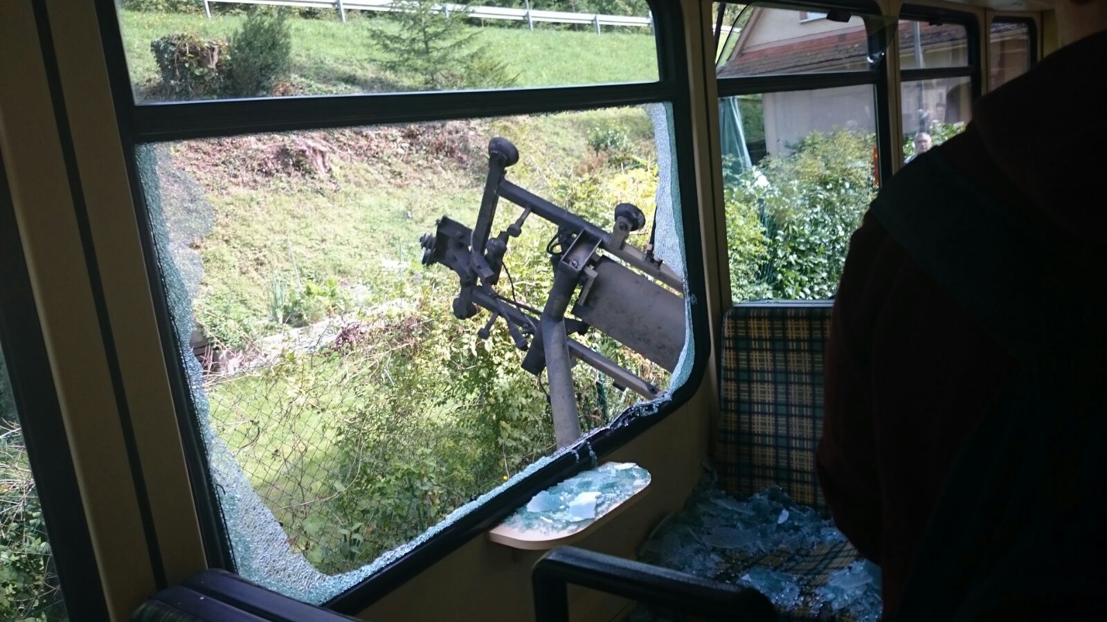 Zwei Freundinnen von mir saßen mit im Zug. Der Panto schlug nach dem abreißen links gegen das Fahrzeug und durchschlug eine Scheibe und verletze zwei Personen leicht.