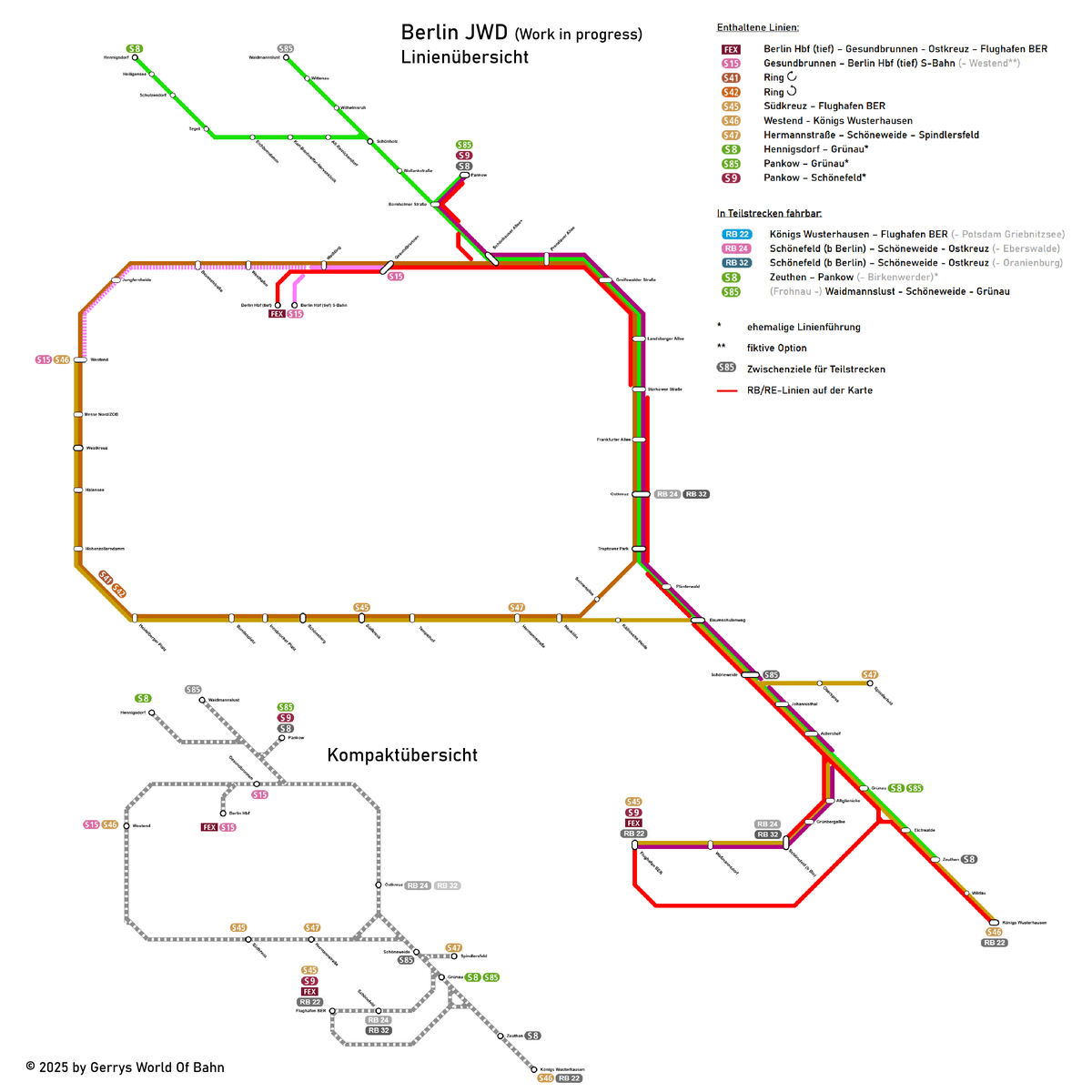 Ich habe mal eine kleine Karte gebastelt für die Linienmöglichkeiten in Berlin JWD (Stand jetzt) - ohne Gewähr. Da die komplette S1 erst ab Gesundbrunnen verfügbar ist, habe ich auf die Darstellung verzichtet.
