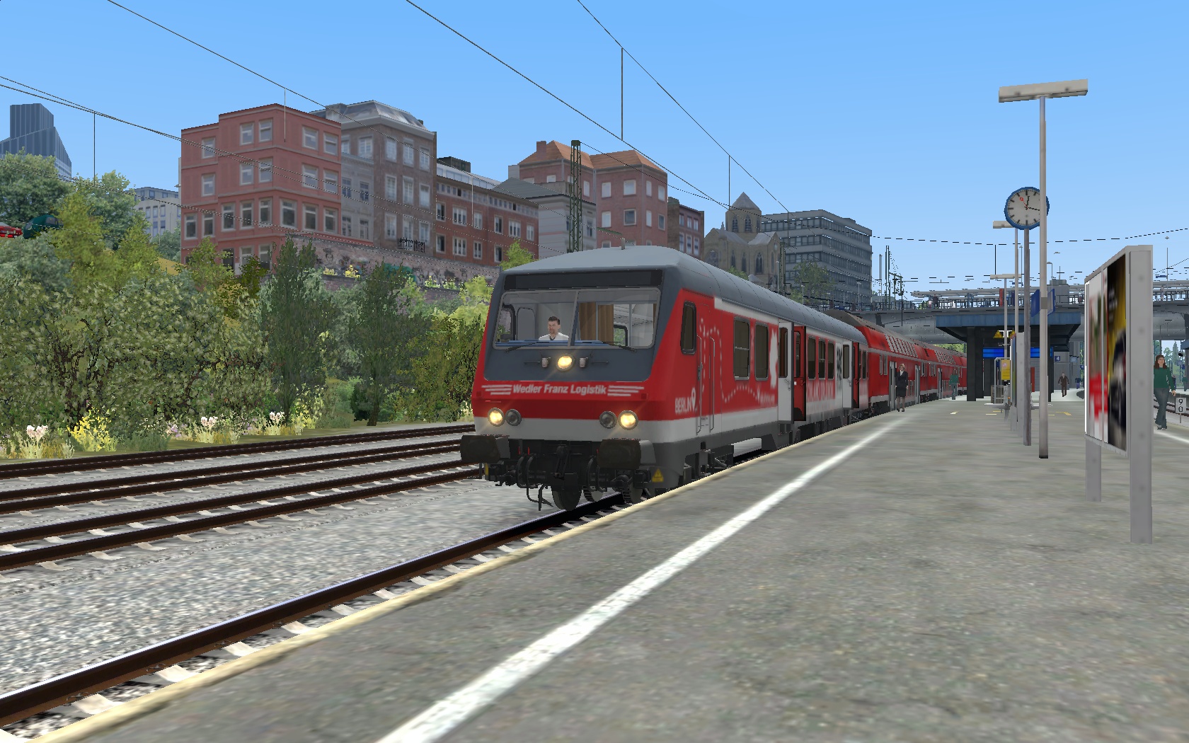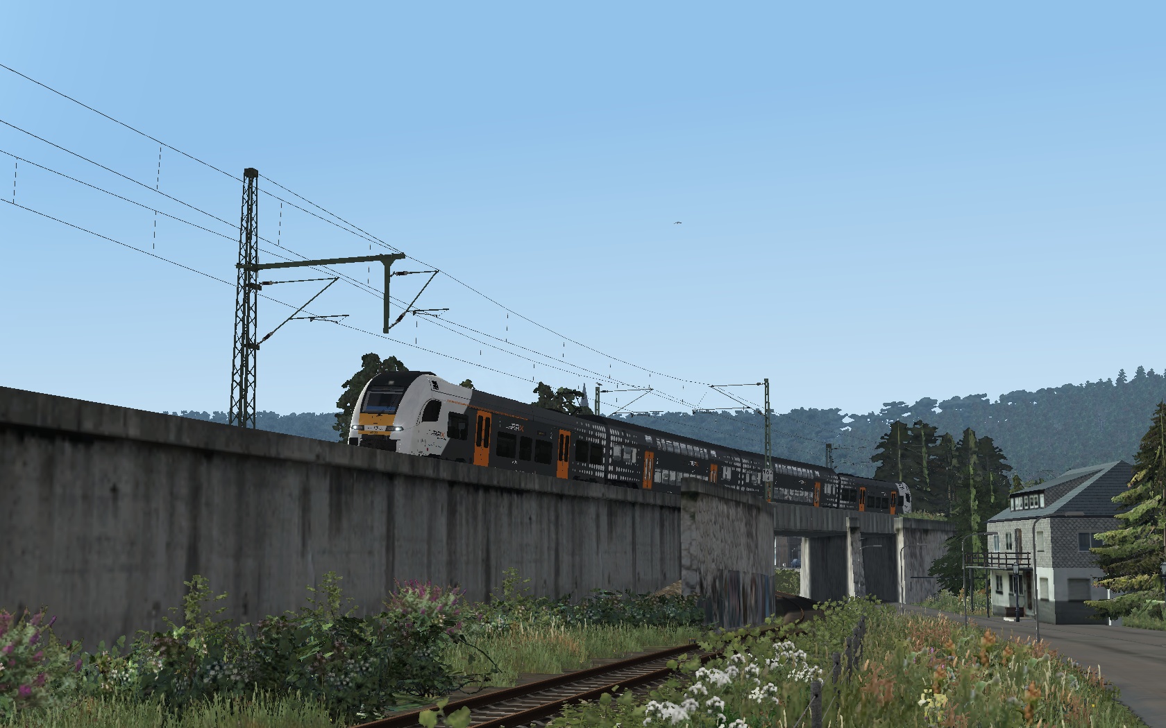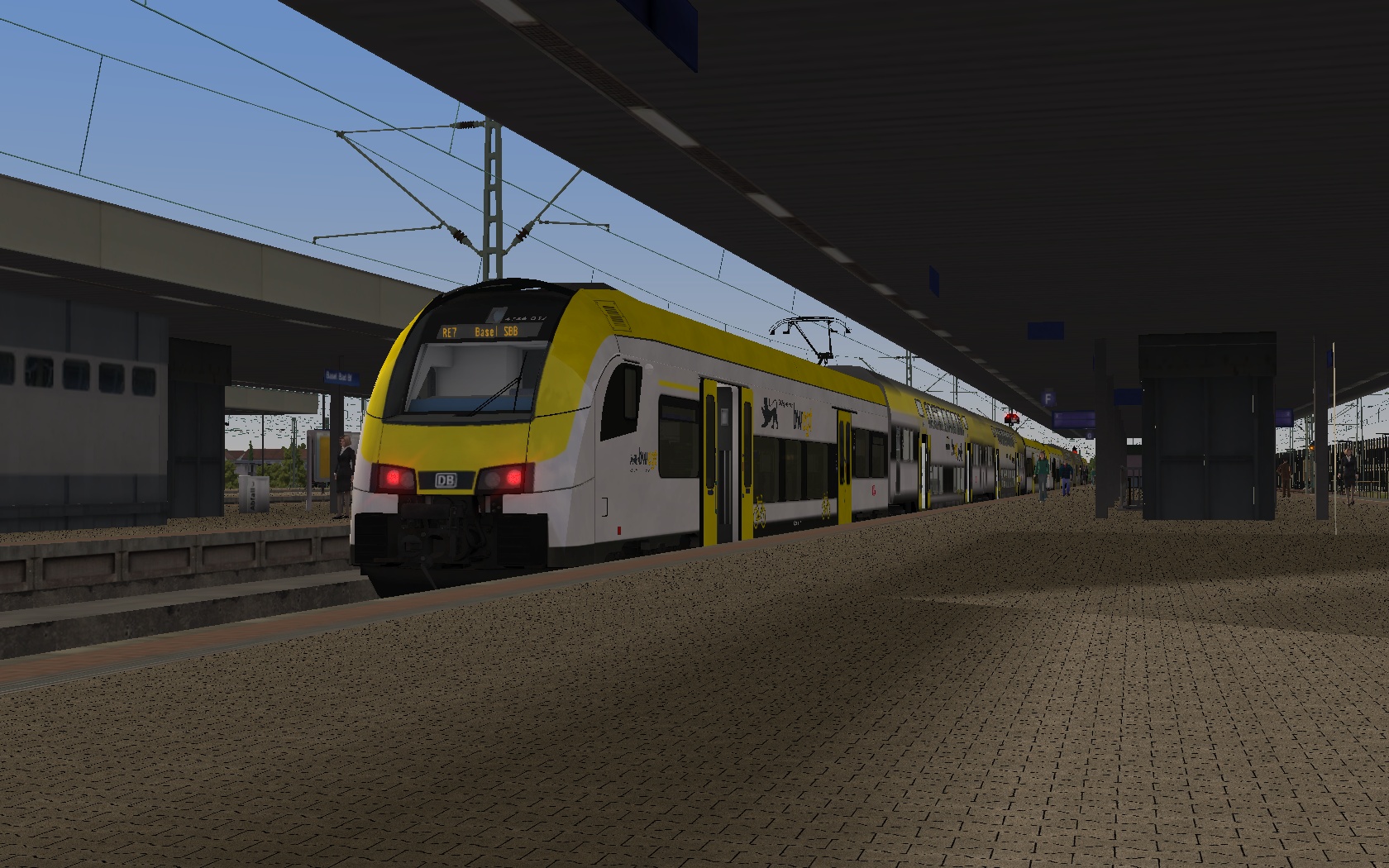 Erste Szenarioversuche. Morgendlicher RE7 von Offenburg nach Basel SBB auf Freiburg-Basel mit Desiro HC Repaint. Noch ohne KI-Verkehr. Der Fahrplan ist straff, lässt sich aber gut fahren. Wenn alles gut klappt, wird das Szenario quasi als "alte" Variante auch mit 146.0 (mit dem 146.1 Repaint) und den vR-Dosto 94 erscheinen, welche ja auch real dort vor Umstellung auf Desiro HC fuhren.