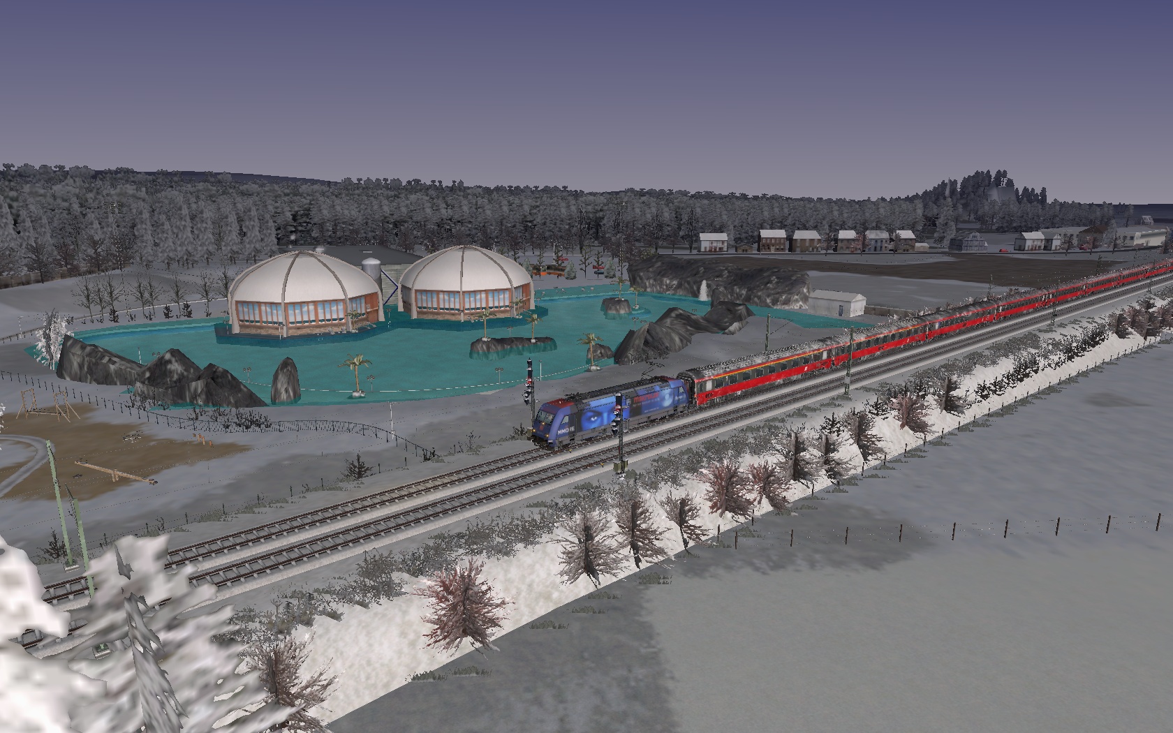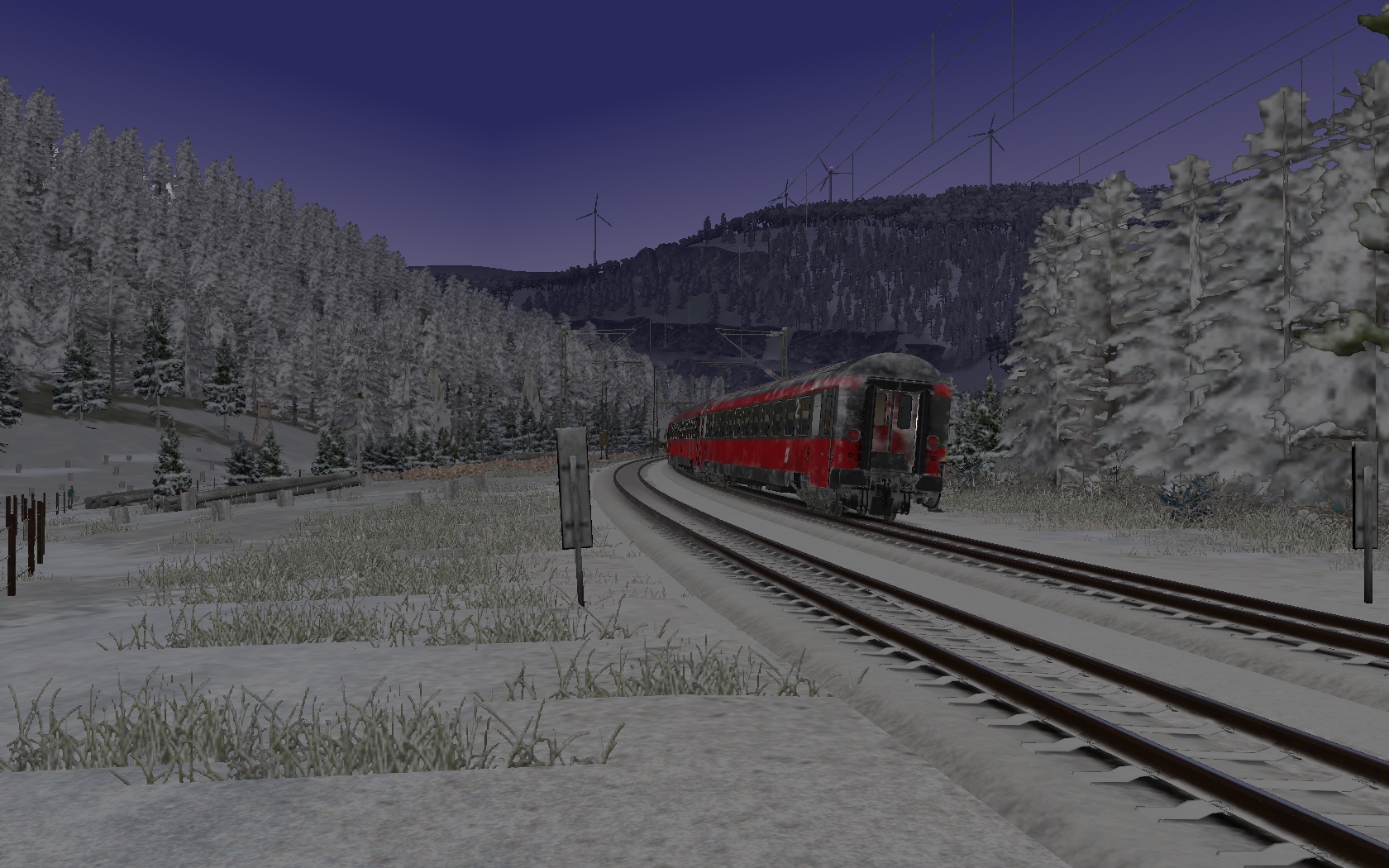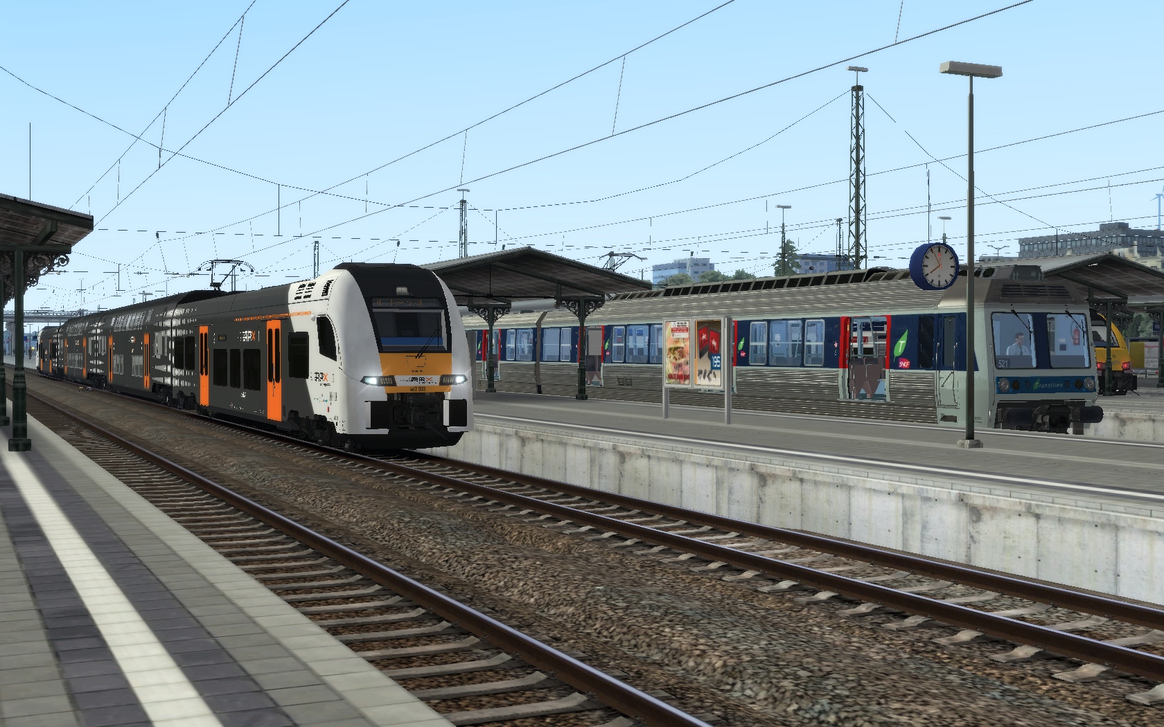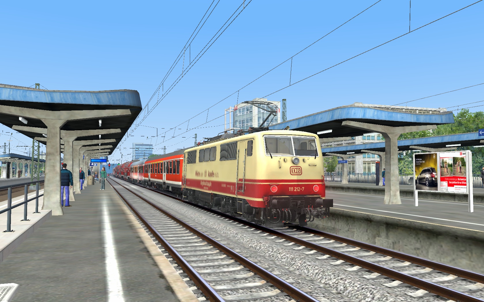 Erste Szenarioversuche. Morgendlicher RE7 von Offenburg nach Basel SBB auf Freiburg-Basel mit Desiro HC Repaint. Noch ohne KI-Verkehr. Der Fahrplan ist straff, lässt sich aber gut fahren. Wenn alles gut klappt, wird das Szenario quasi als "alte" Variante auch mit 146.0 (mit dem 146.1 Repaint) und den vR-Dosto 94 erscheinen, welche ja auch real dort vor Umstellung auf Desiro HC fuhren.