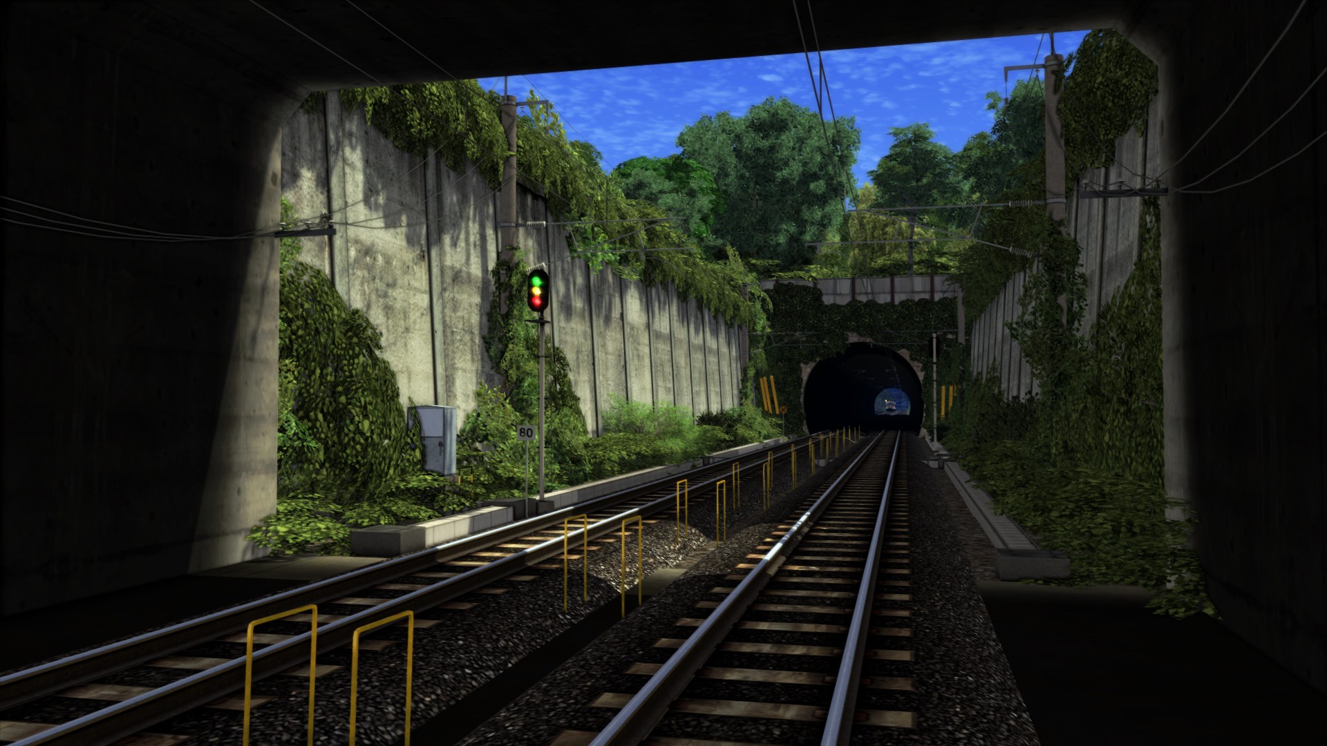 Zur Zeit sitze ich an einem Tunnel. Weil die Tunnelröhre als Loft-Objekt nie so wirklich am Portal gepasst hat und ständig die Sonne durch irgendwelche Ritzen reinschien, ist der Tunnel nun am Stück. Inklusive der weitläufigen Betonwände vor der Einfahrt. Er wächst also noch. Was einzeln gesetzt wurde, ist das ganze Drumherum. Vor allem die wuchernden Pflanzen.