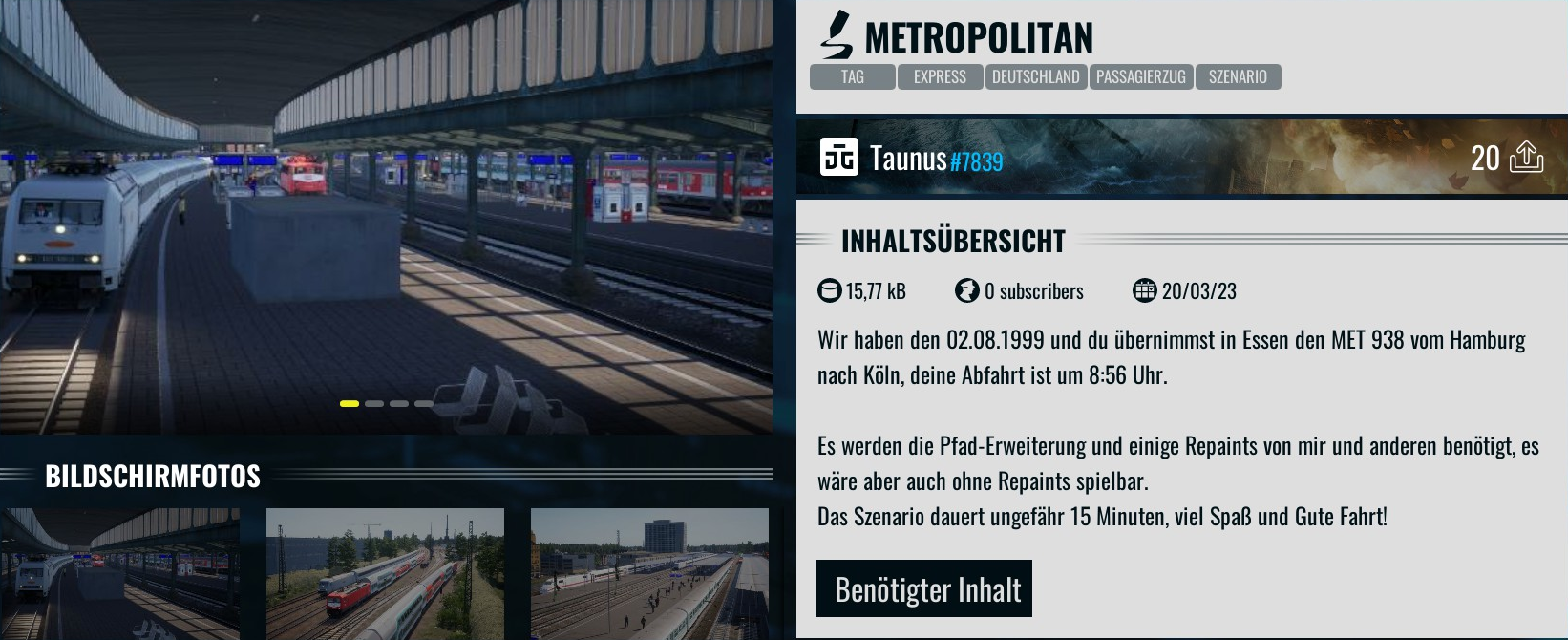 Und angesichts dessen, dass der Ersteller in seinem Thread wenn ich es richtig verstanden habe danach fragt, wie man Bahnsteige platziert halte ich die Formulierung "wird tatsächlich kommen" fast für sehr optimistisch. Aber umso mehr Respekt falls da tatsächlich auf absehbare Zeit mal was veröffentlicht wird.