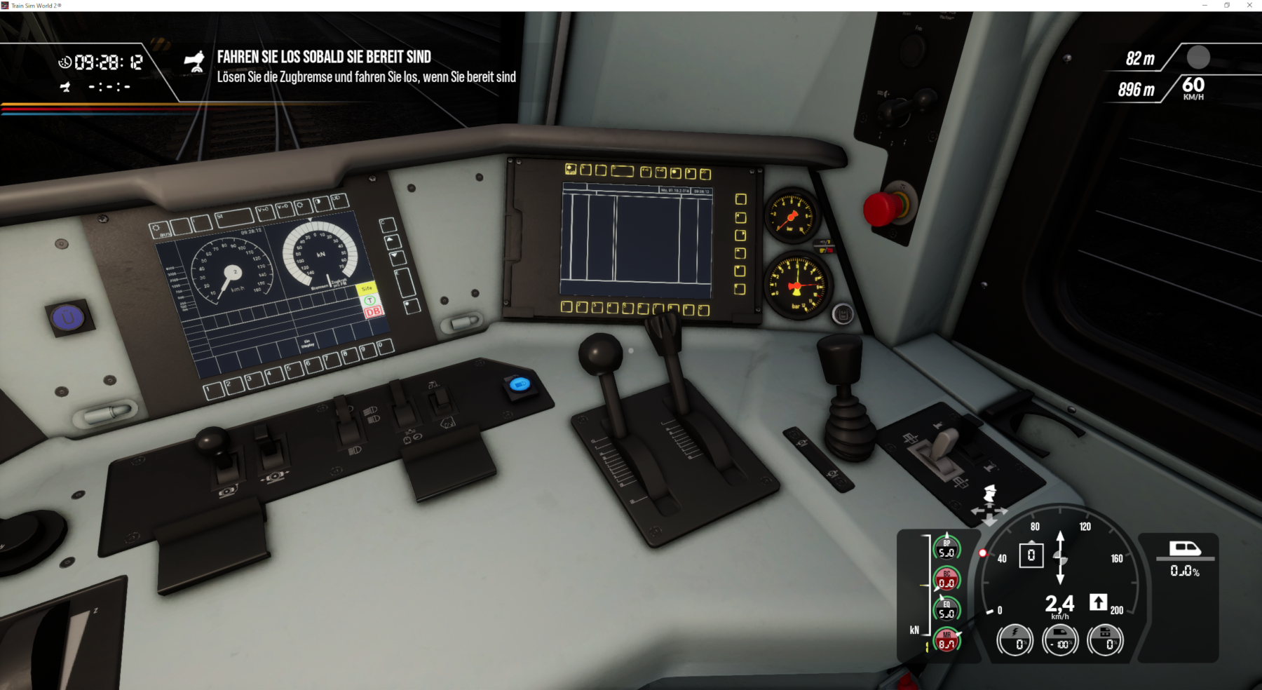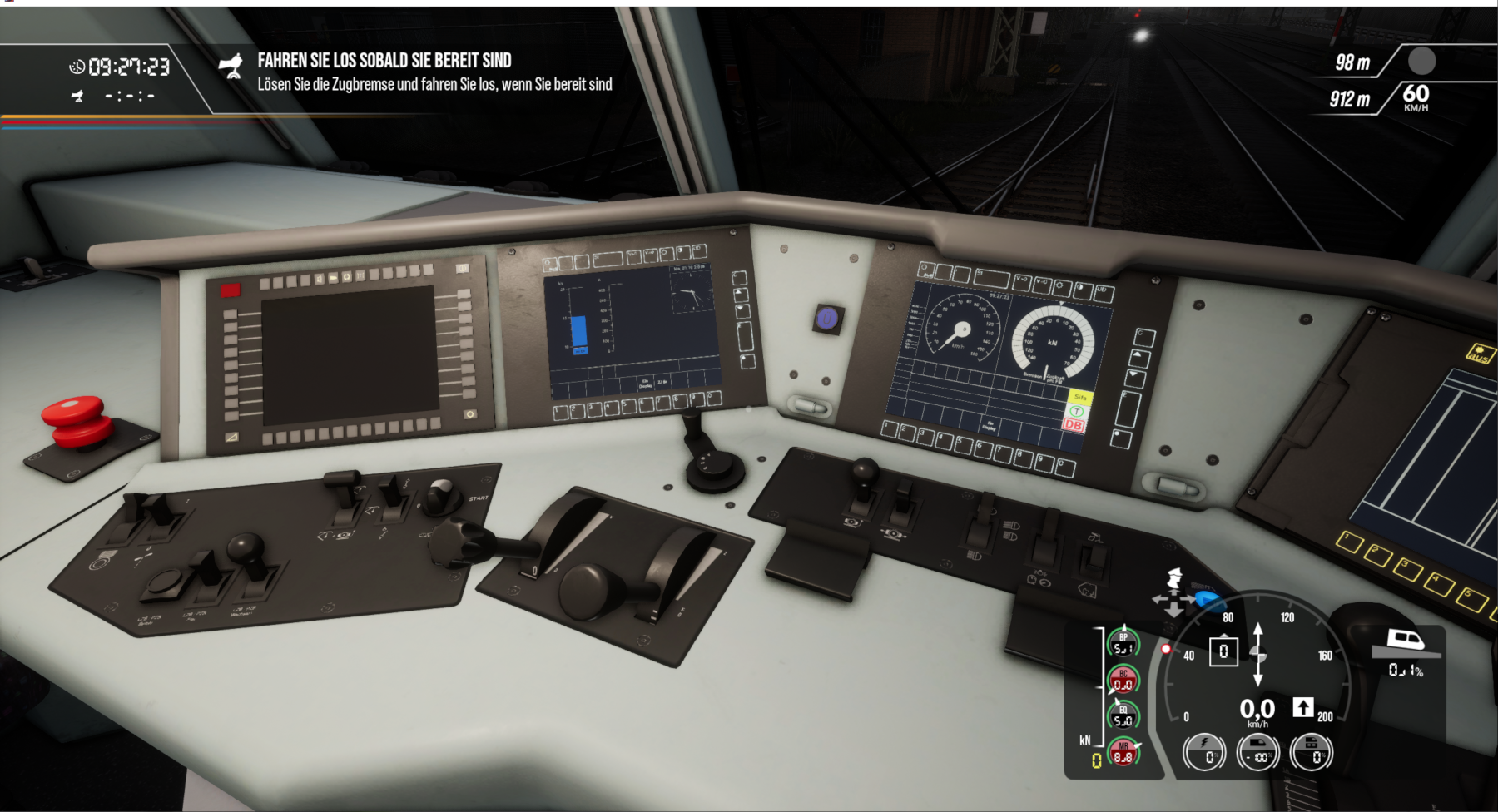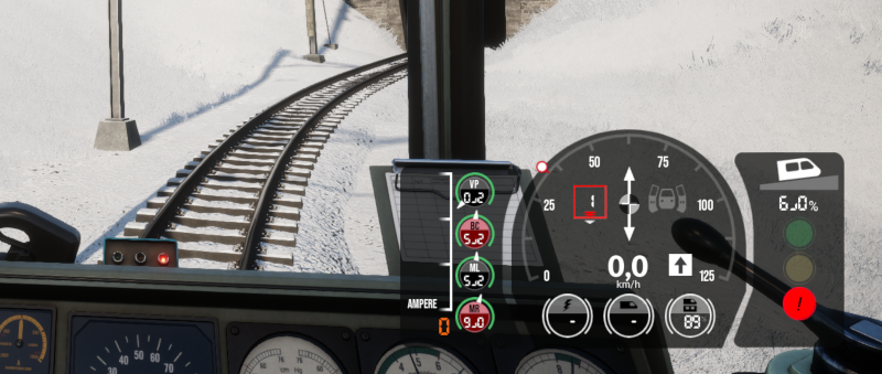 Erst blinkt die gelbe Lampe am HUD, dann erscheint ein rotes Ausrufezeichen - dann steht der Zug.