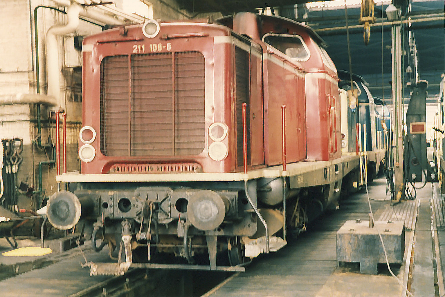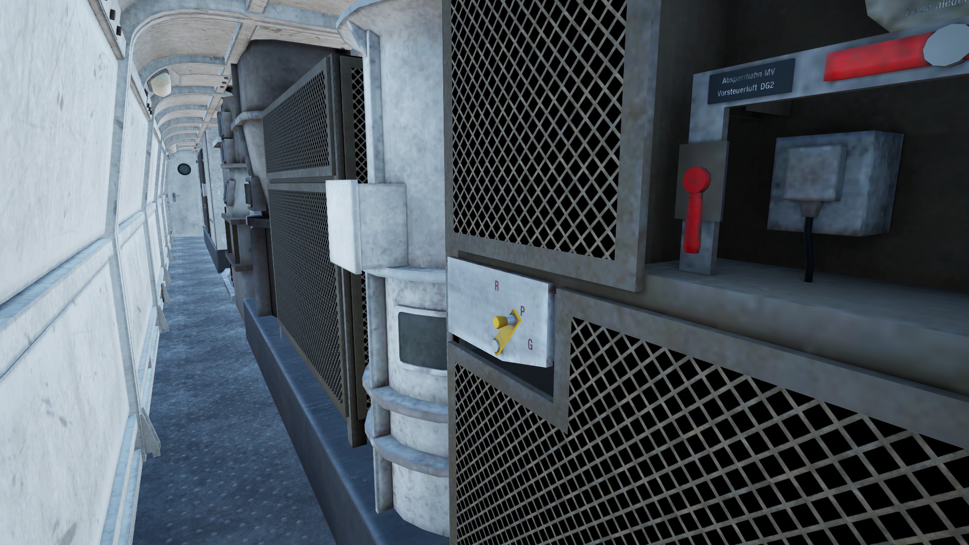 Die Bremsen lassen sich im Maschinenraum am Führerstand 1 in der Fahrtrichtung rechts einstellen, also einmal durch die Tür hinter dem Sitz des Lokführers.