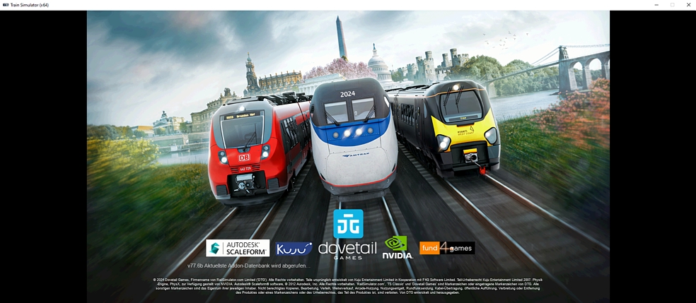 Ich hatte mir ein eigenes Startbild erstellt und im Pfad Railworks/data/textures/frontend die entsprechenden Dateien loading_external.jpg, loading_external.tga und TSC_BG.tga durch mein eigenes Bild ersetzt. Trotzdem saugt sich der TSC 2024 beim Start immer noch dieses originale Bild irgendwo her, anstatt das modifizierte anzuzeigen. Habe auch den Cache gelöscht und Steam mal auf offline gesetzt. Habe keine Ahnung, wo es sich noch verstecken soll.