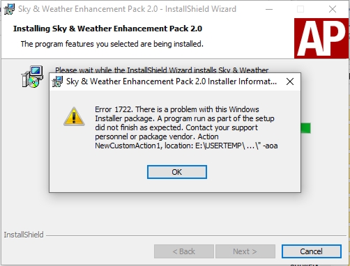 Ich habe das Wetter in der vergangenen Nacht gekauft, heute am frühen Nachmittag das S&W Enhancement Pack 2.0 bei AP heruntergeladen und ende mit demselben Installationsfehler. Da brauche ich gar nicht weiter probieren und warte auf das Installer-Update.