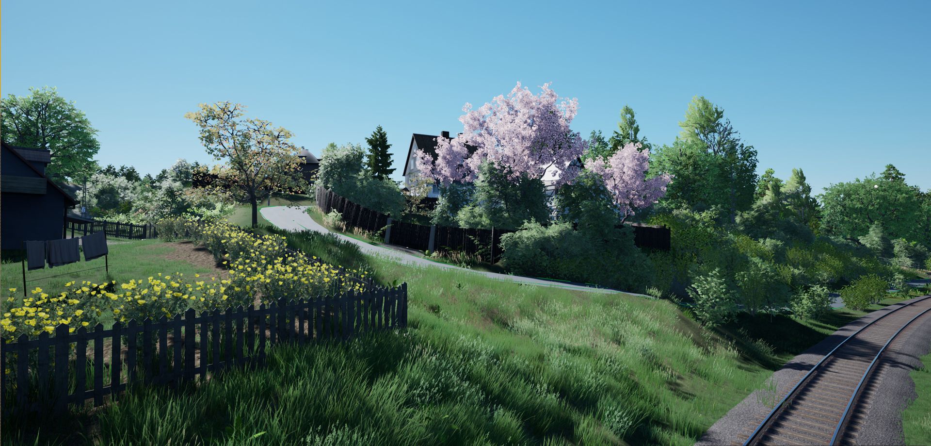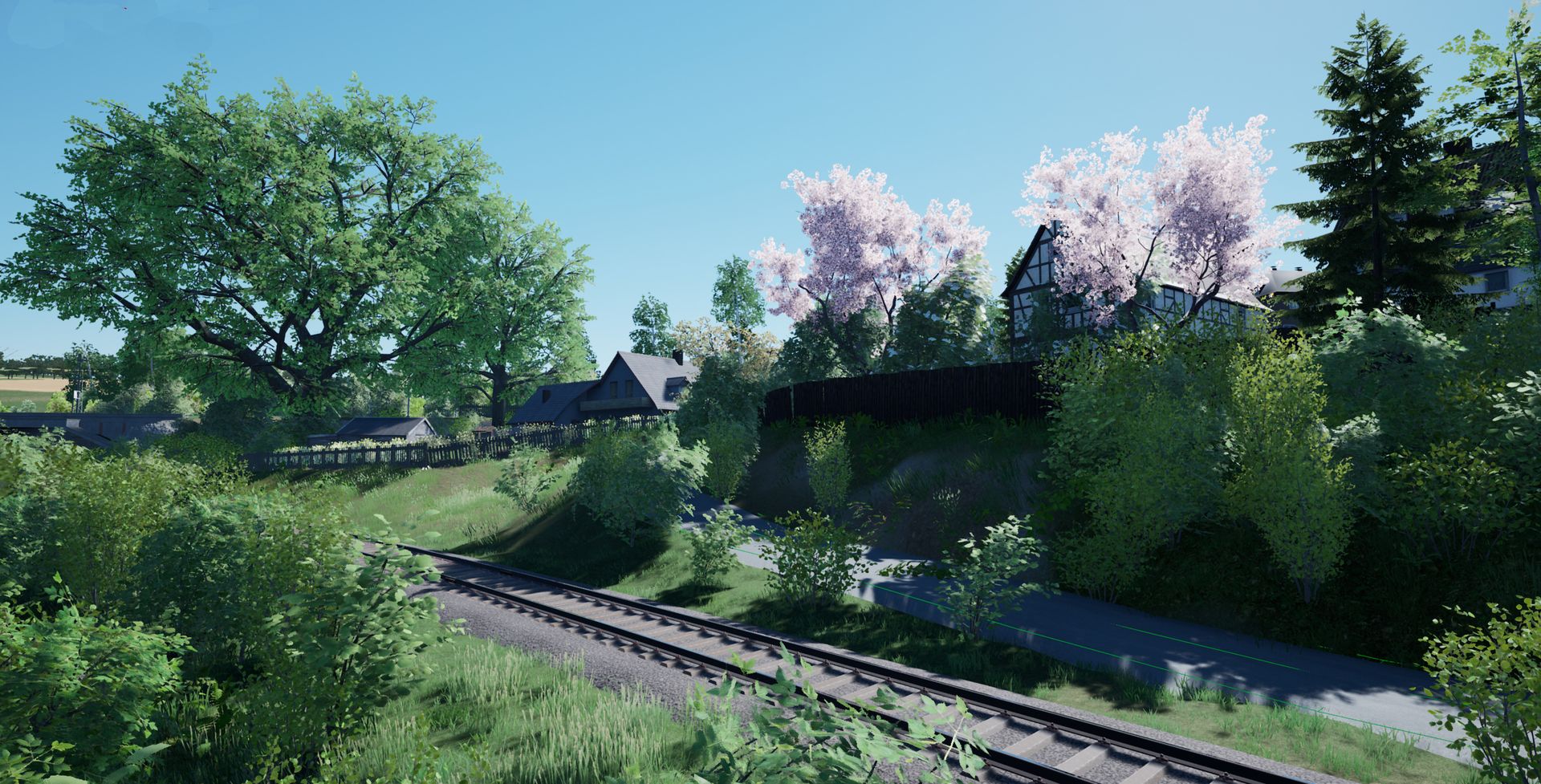 Sieht gut aus, manchmal sieht es etwas griselig in der Vegetation aus, Schatten ploppen auf und weit entfernte Bäume sind sehr hell. (hellgrün)