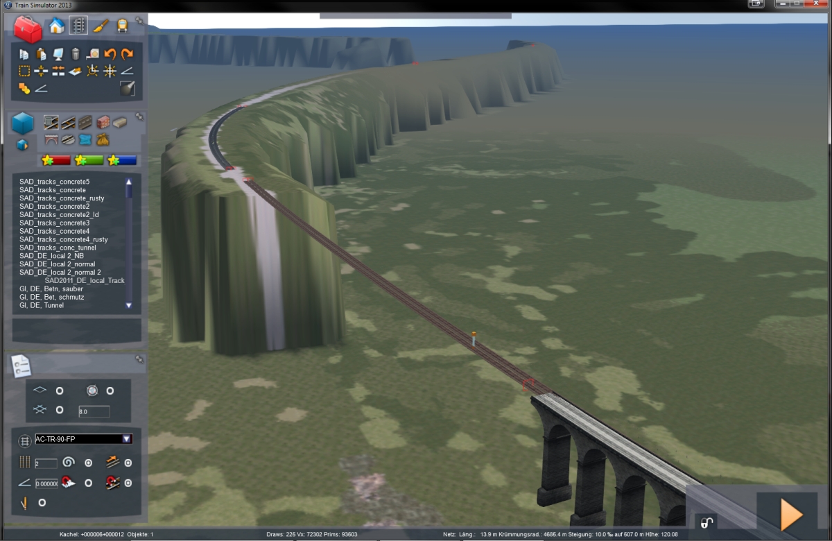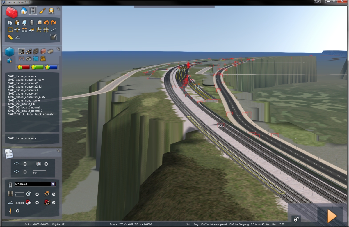 Jetzt müssen am neuen Abschnitt dann noch alle Gleise richtig getrennt werden, die Überhöhung angewandt, die Tunnel und Brücken neu gezogen werden und dann kann auch die HGS bis zu diesem Punkt erneut werden.