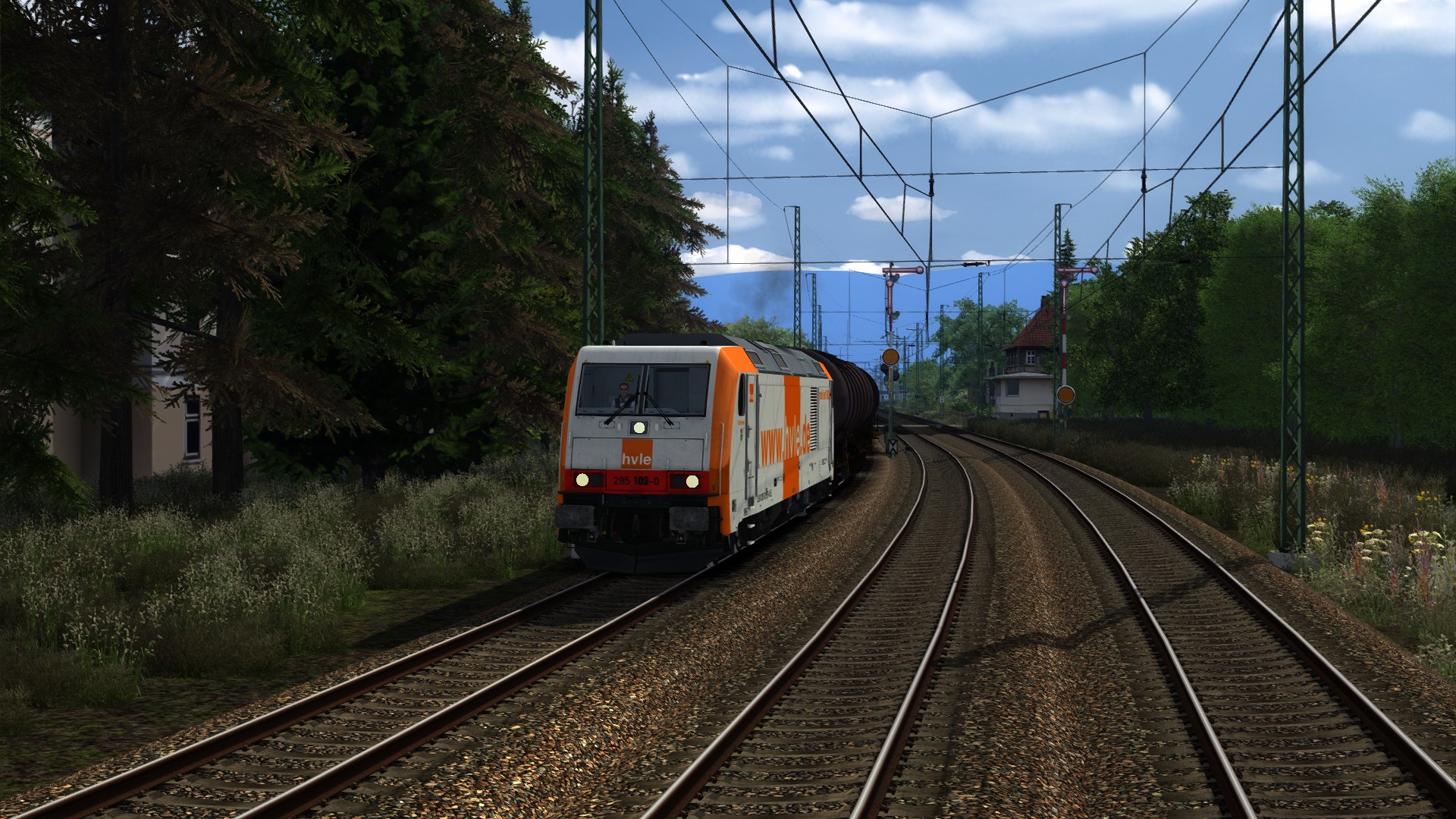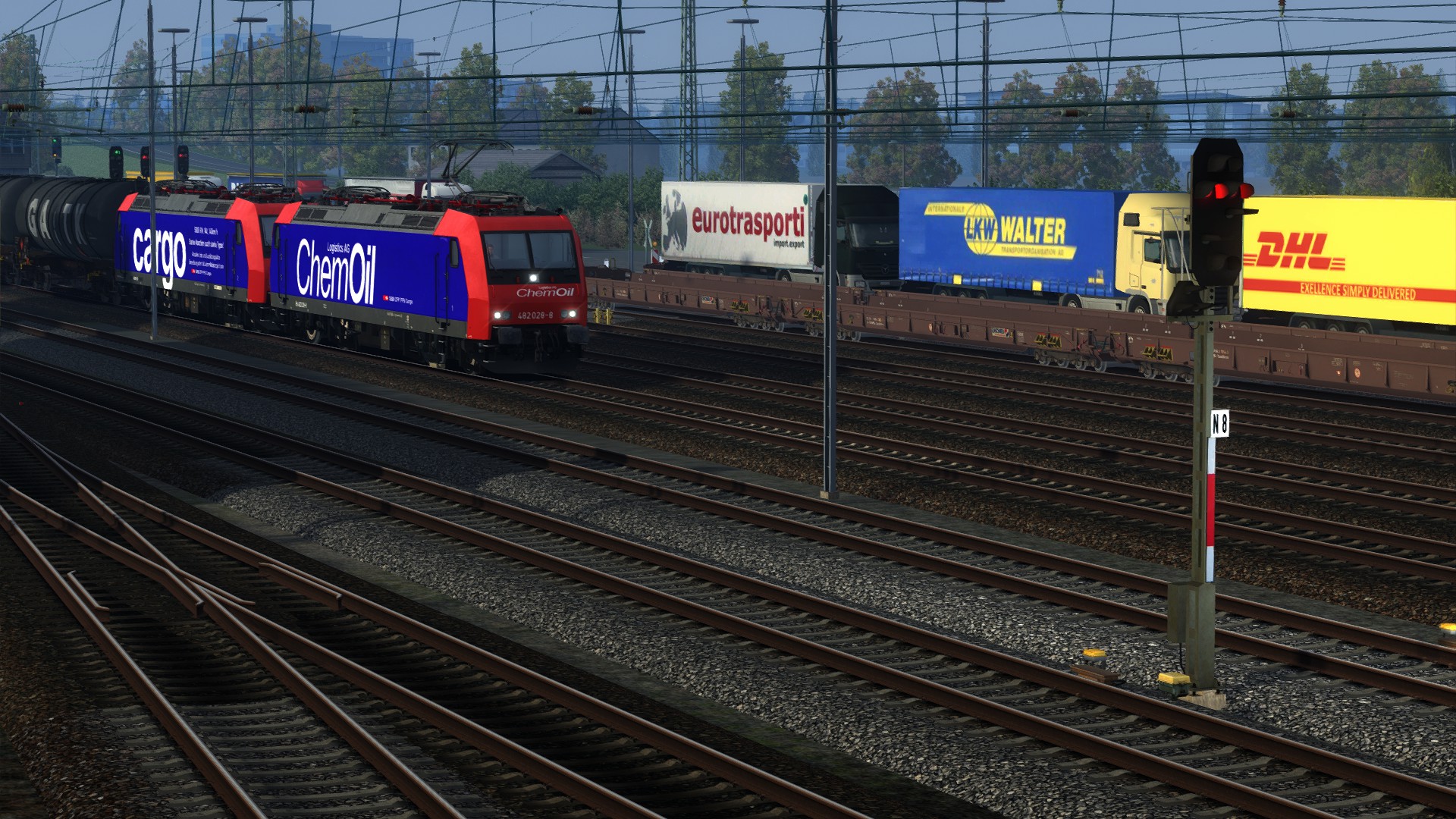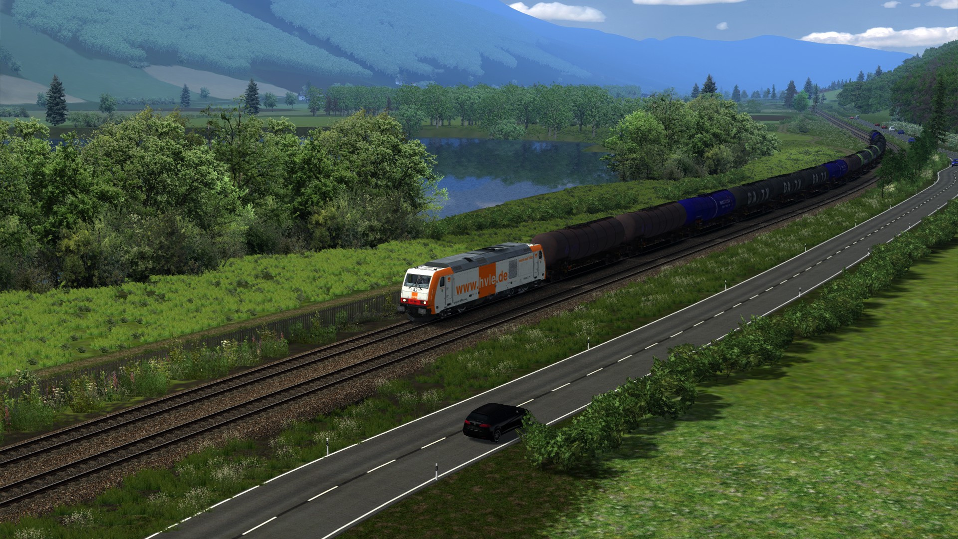 "GATX Kesselwagen nach Koblenz" von @Gsonz, schönes Szenario auf schöner Strecke, Koblenz Trier Reloaded, von @Matze (RD) . Spielet Lok gegen die TRAXX 186 von ChrisTrains getauscht.