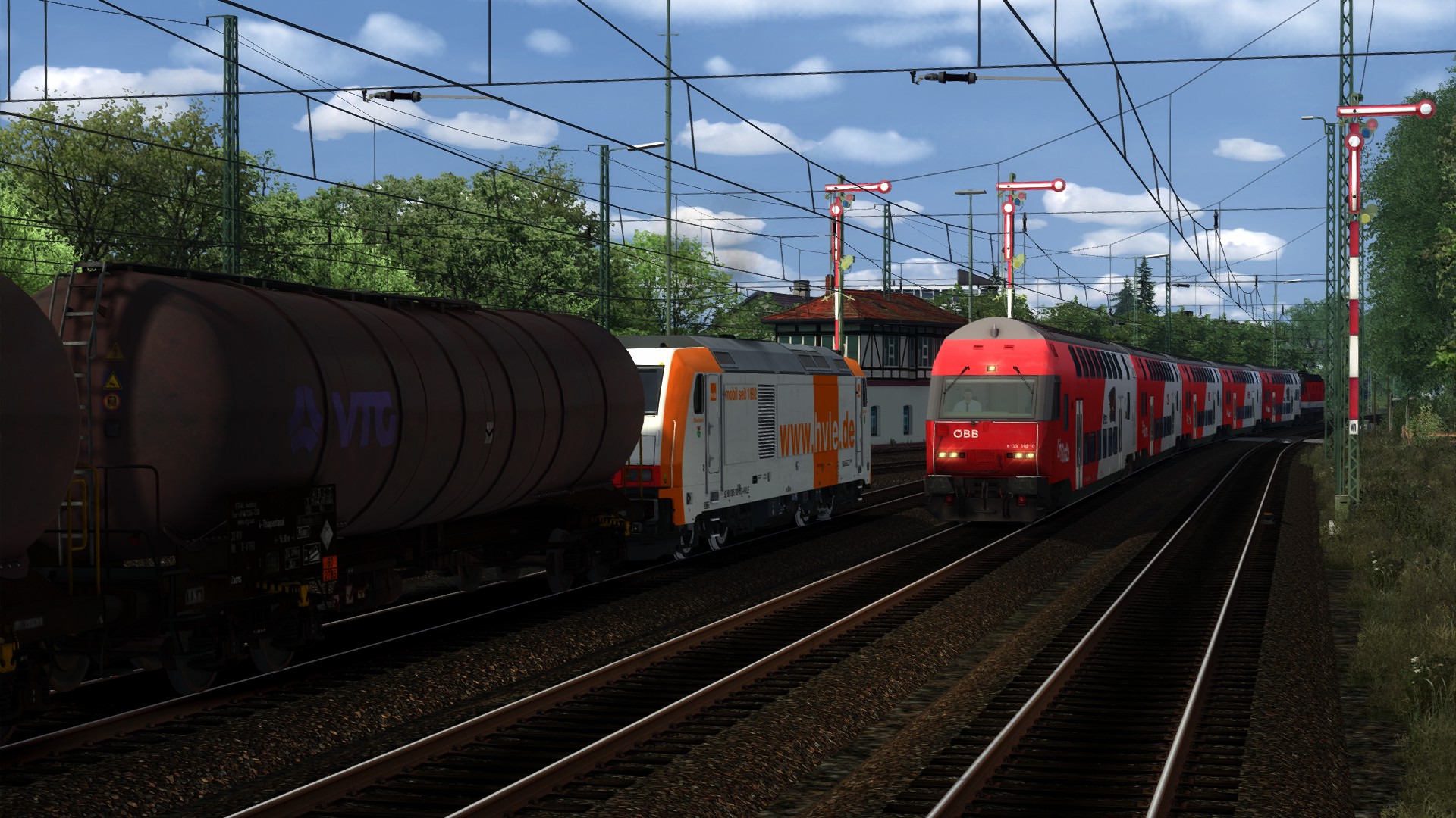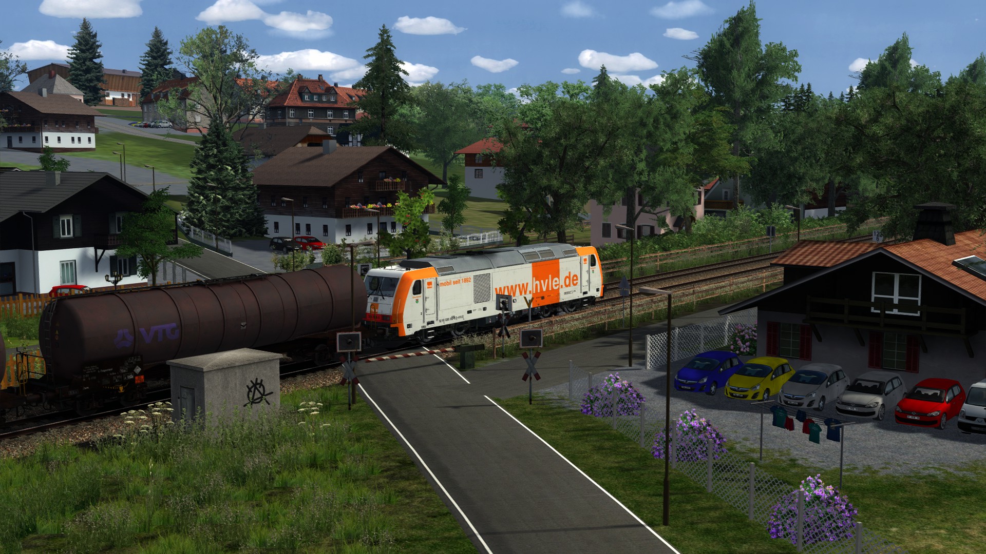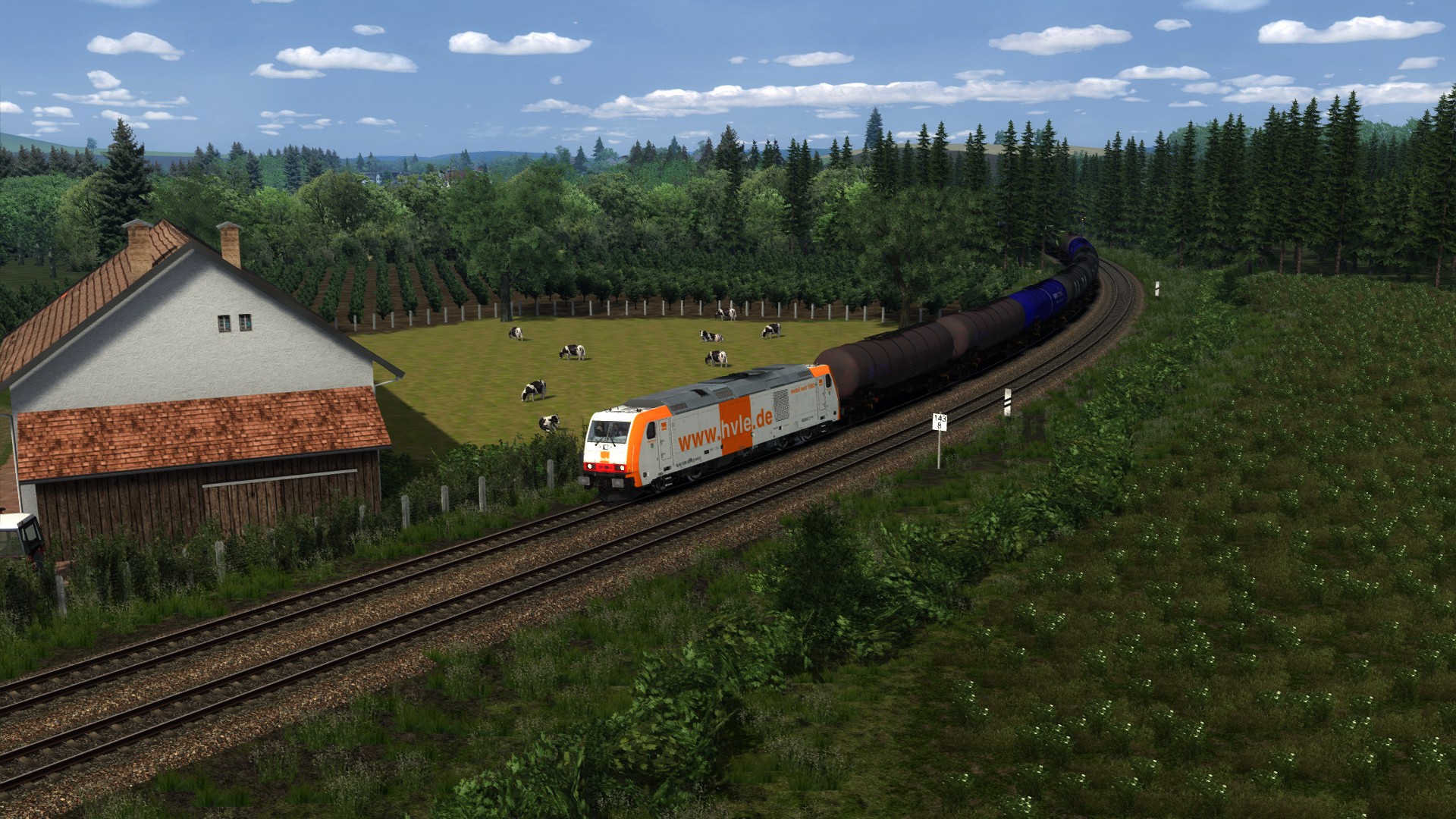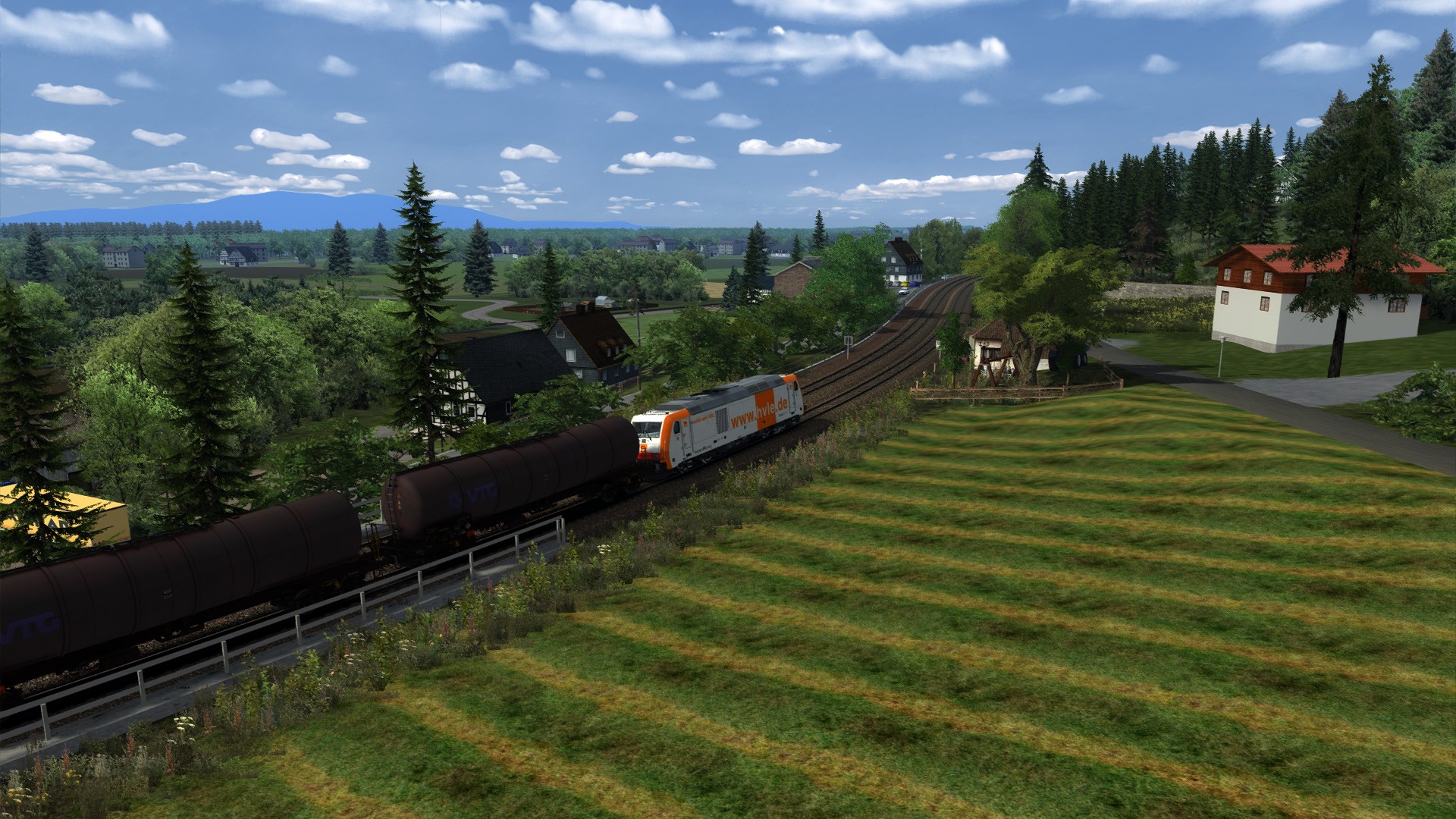 "GATX Kesselwagen nach Koblenz" von @Gsonz, schönes Szenario auf schöner Strecke, Koblenz Trier Reloaded, von @Matze (RD) . Spielet Lok gegen die TRAXX 186 von ChrisTrains getauscht.