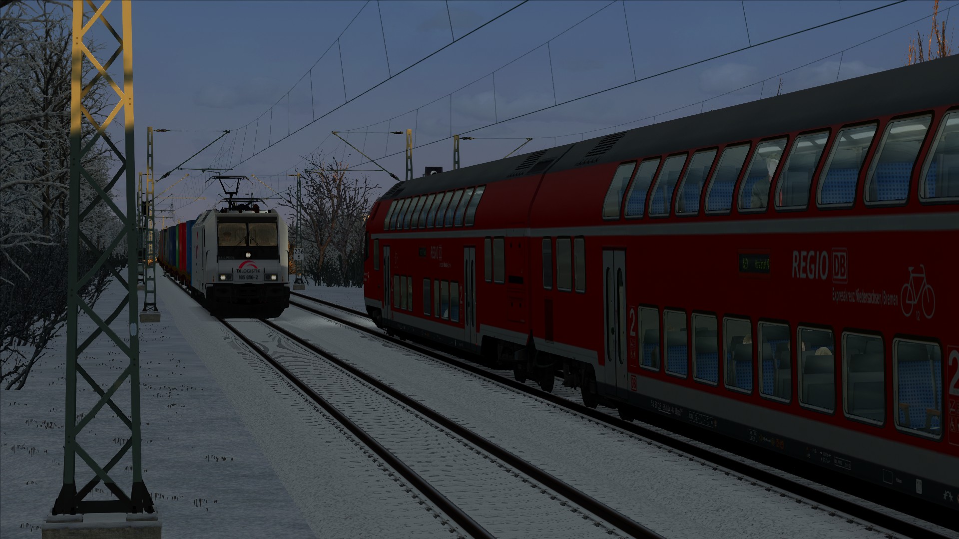 Mit FXAA + 2x2 SSAA ist das Flimmern weg, das Bild ganz o.k. und die FPS gehen in den Keller, Münster Hbf z.B. im Szenario von @luckygod, Helgoland-Express, 14 FPS.