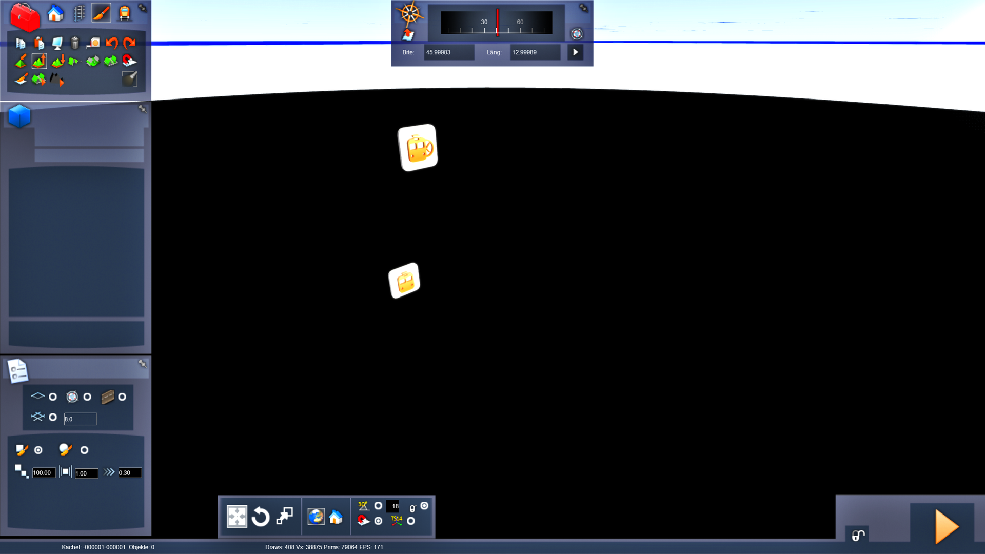 Ich hab schon das Forum von vorne bis hinten durchsucht, aber ich habe keine Lösung für mein Problem gefunden. Ich möchte die Strecke Travisio - Venezia Santa Lucia bauen. Hab mir dazu die notwendigen Dateien (natürlich die richtigen) für das DEM besorgt. Hab sie genau nach Anleitung (hier aus dem Forum) in den erstellten DEM/SRTM Ordner gepackt. Dann hab ich mir Längen und Breitengrad des Grenzbahnhofs Travisio gesucht (13,6 - 46,5), hab das im TS eingetragen und die Strecke erstellt. Soweit so gut. Dann bin ich auf importieren gegangen und habe 5x5 Kacheln ausgewählt. Daraufhin befand ich mich unter der Erde, was auch noch logisch war, da das Gelände dort ja höher liegt. Ich bin dann mit der Kammera hochgeflogen, doch als ich wieder über dem Boden war war dort alles flach. Kein Berg kein gar nichts, einfach nur flache Ebene. Woran kann das liegen? Ist das Google Overlay zwingend notwendig dafür? Das funktioniert nämlich nicht bei mir noch, weil scheinbar meine Kreditkarte abgelaufen ist.