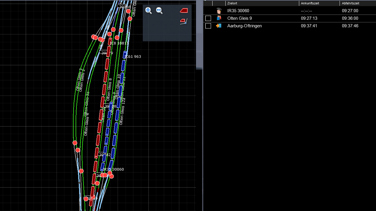 Etwas anderes ist mir noch aufgefallen. Der KI-Zug IR16 (welcher später nur langsam fährt) fährt am Anfang des Szenarios zuerst rückwärts zum Bahnsteig. Der Zug ist jedoch eigentlich bereits im Bahnhof drinnen.