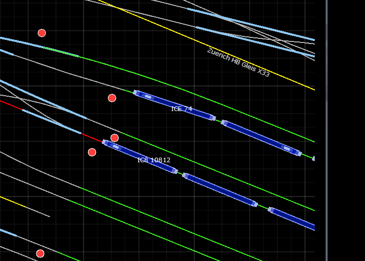 Der IC-Zug fährt jedoch nicht los, ich kann leider nicht eruieren, weshalb genau. Ich denke jedoch, dass der ICE seine Ausfahrt bereits gestellt bekam. Die Priorität beider Züge habe ich nun auf "International" umgestellt. Auch damit hatte ich leider kein Erfolg.