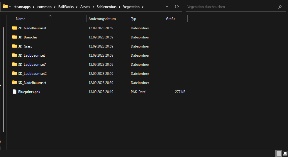 Das hab ich doch schon getan. Anfangs hatte ich alles über utilities installiert jetzt beim 2. Versuch mit entpacken. Und wie man sieht im Screenshot oben ist in der rwp von https://rail-sim.de/forum/filebase/entry/2727 einfach nicht der Ordner Vegetation/scenery enthalten welcher von TS-Tools als fehlend gekennzeichnet ist. Hier nochmal mit 7zip anstatt WinRar: