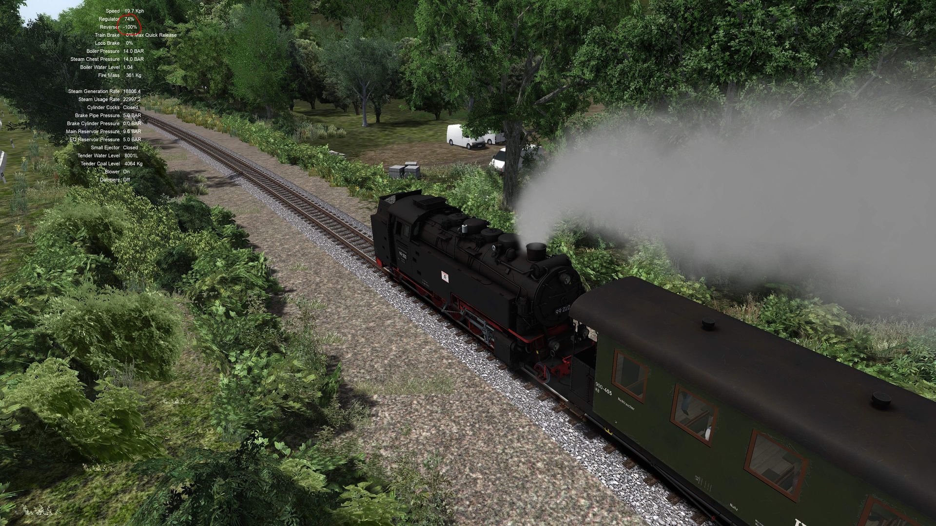 Um mal wieder auf die Lok zurückzukommen, wie schon gesagt eine deutliche Verbesserung in der Qualität gegenüber der Harzbullen. MIr gefällt sie sehr gut, nur ist mir aufgefallen, dass die Emittervelocity vom Main Smoke Stack Emitter quasi umgekehrt ist. Halt bei wenig Dampf in den Zylindern schießt der Dampf richtig aus dem Schornstein raus, obwohl er eigentlich nur ganz leicht ausströmen sollte. Bei viel Dampf im Dampfdom sollte es eigentlich so sein,dass der Dampf richtig ausm Schornstein rausströmt. Würde mich freuen, wenn das eventuell in einem Update behoben wird, ist kein schwerer Fix soweit ich weiß. LG