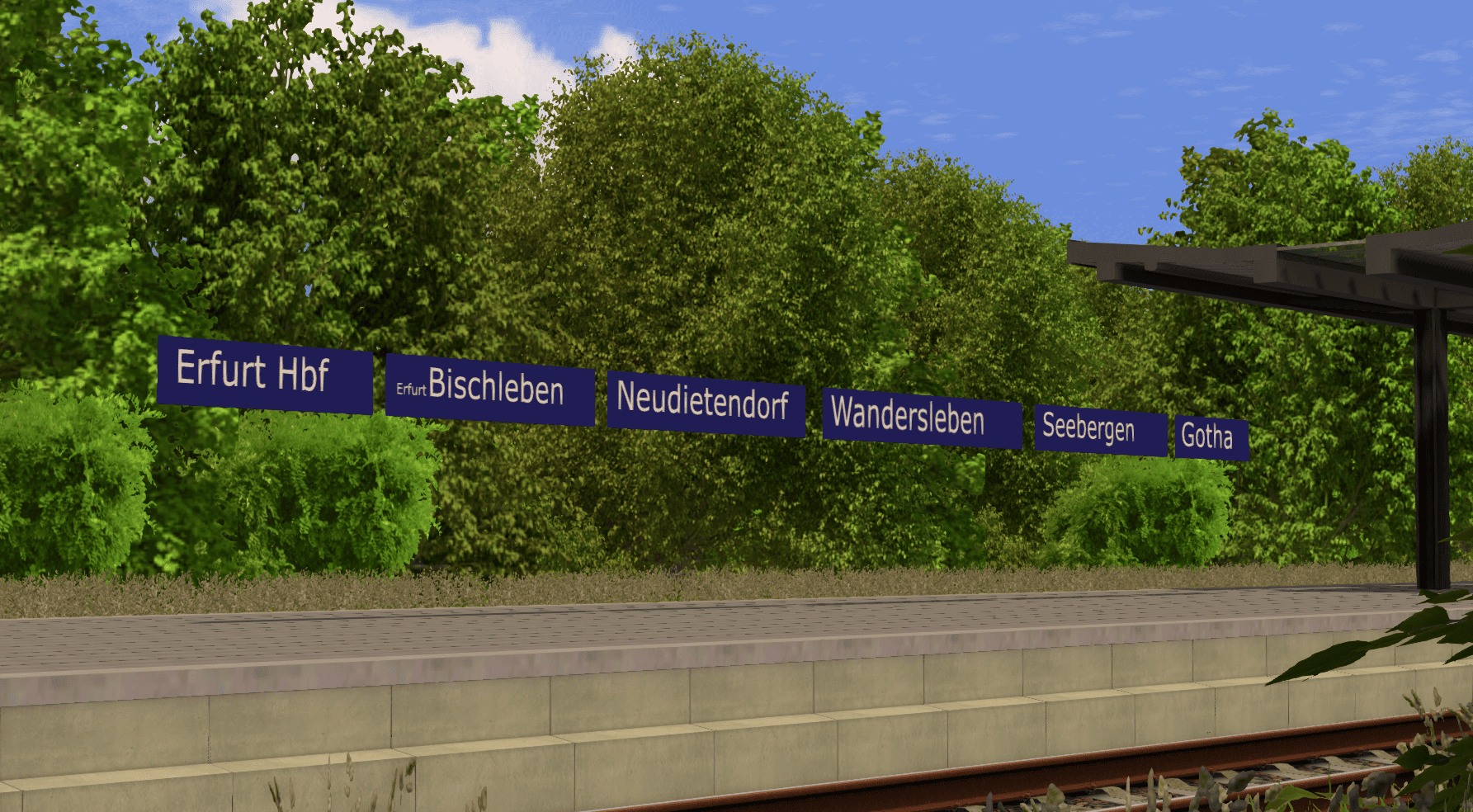 Zudem werden einzelne Bahnsteigobjekte und Bahnhofsgebäude (wie später wahrscheinlich auch der Bahnhof Uelzen) von mir selbst, oder Kollegen gebaut. Die Bahnhofschilder wurden halbwegs original Nachgebaut. Die Maße sind dabei vollständig real.