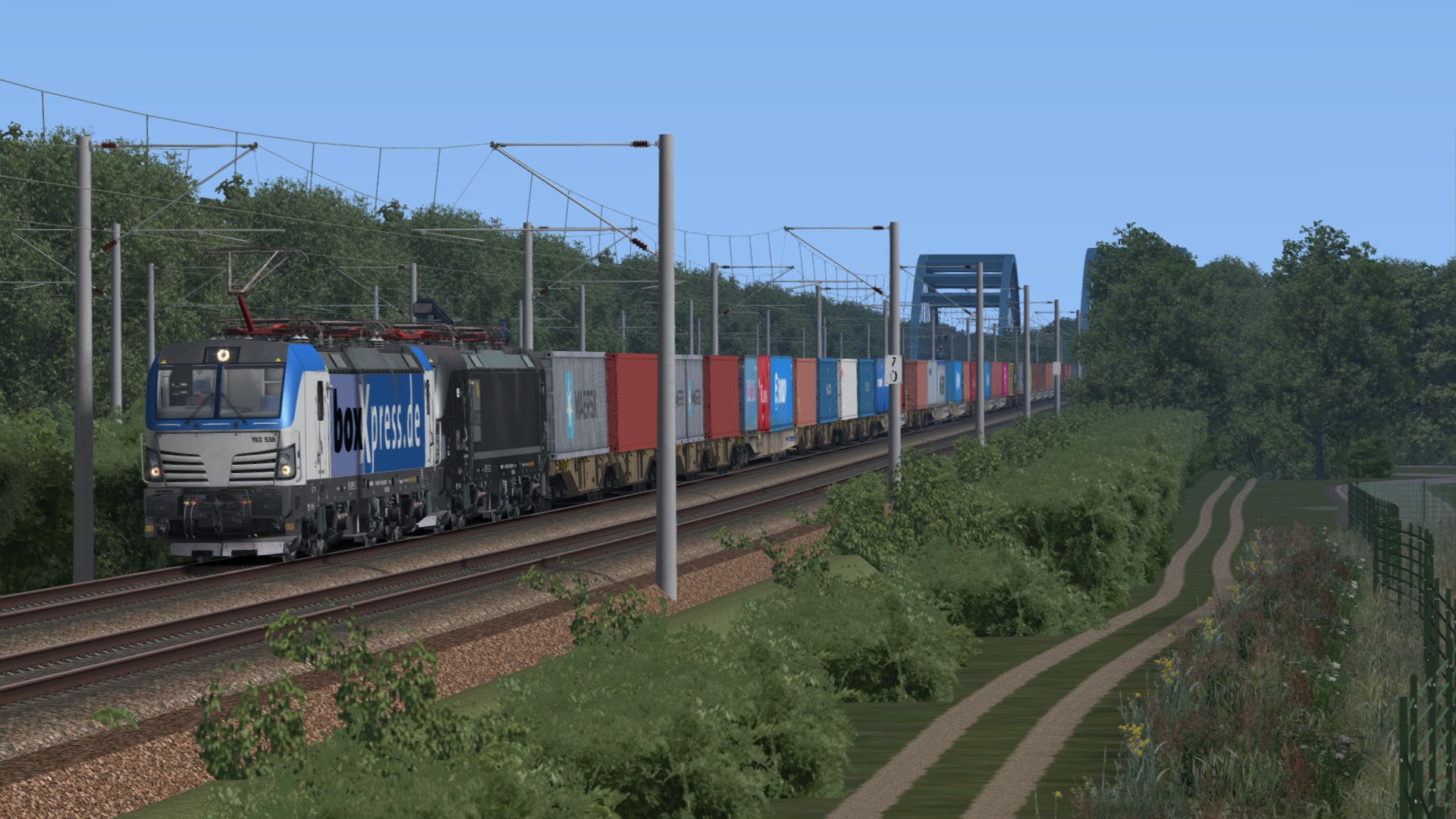 Die Wagen gibt's. Das sind die Sdggmrss-Wagen von WaggonWerkstatt. Nur die DHL-Wechselbrücken muss man sich selber drauf modden.