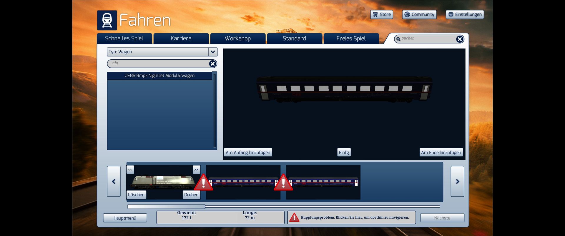 Ja, ich hatte den Werbe ÖBB Waggon mit Saalbachwerbung auch installiert. Auch mit Eurofirmawagen und Repaint wieder das gleiche.