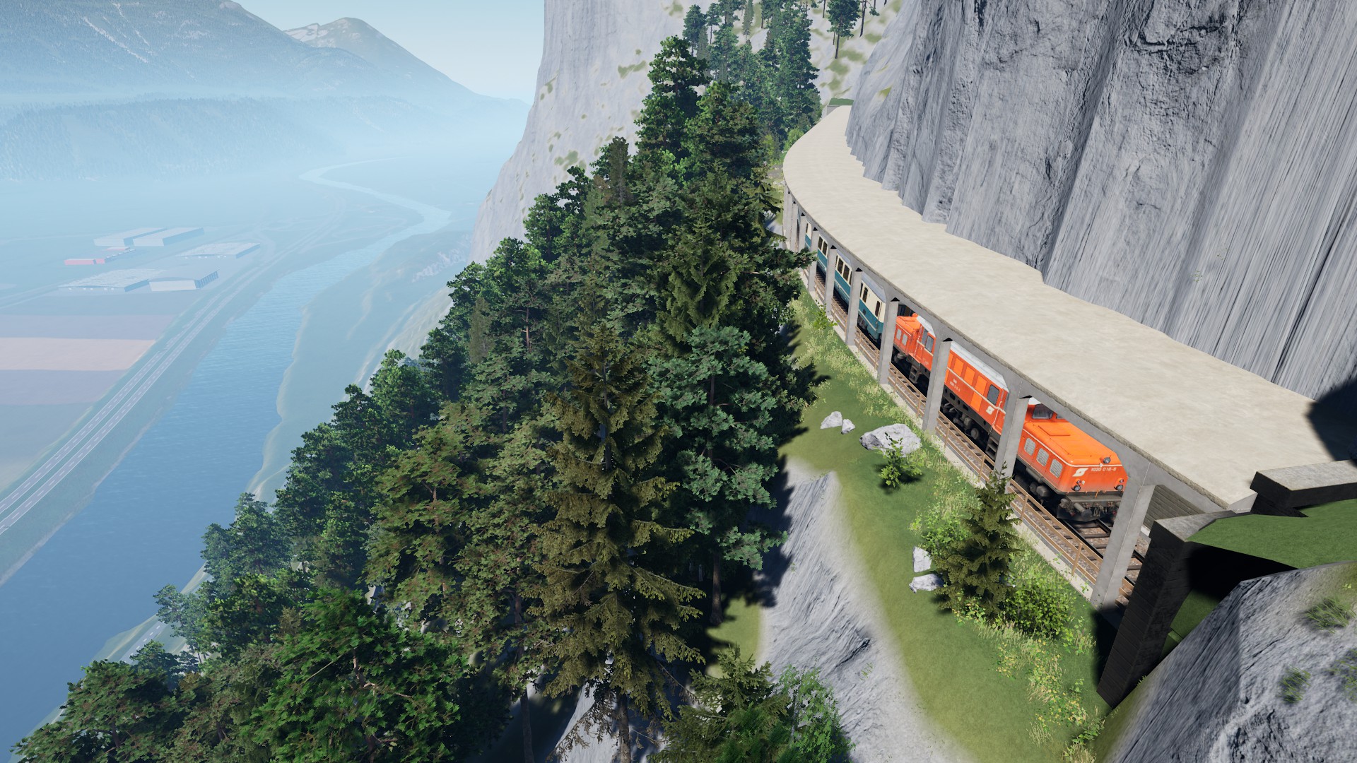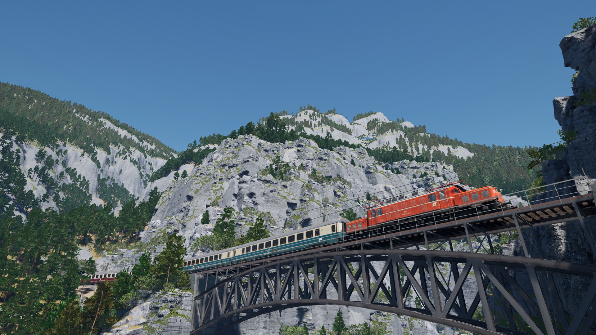 BÜ sind bei TWS immer so eine Sache. Es ist schon erstaunlich, dass überhaupt österreichische Andreaskreuze verbaut wurden. Auf der Semmering- und Vorarlbergstrecke sind nur deutsche Andreaskreuze verbaut. Die Blinklichter sind ebenso deutsche, in Österreich sind die eher quadratisch und der rotweiße Rand ist breiter. In Deutschland kenne ich die nur von BÜs ohne oder mit Halbschranken. Besser wären hochkante rot-gelb Lichter. Das hat man an allen deutschen Strecken als rot rot Wechselblinker dargestellt. Bei Chur-Arosa und Bernina Bahn blinken beide Lichter gleich, aber hier wäre ein Wechselblinken richtig. Ich habe schon gesehen, dass Doppelschranken schließen, als hätten wir Linksverkehr. Also wegen einem BÜ mit falschen Kreuzen, sei es drum.