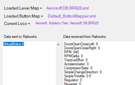 Weiter fällt auf das unter Data sent to Railworks nur Virtual Brake steht.