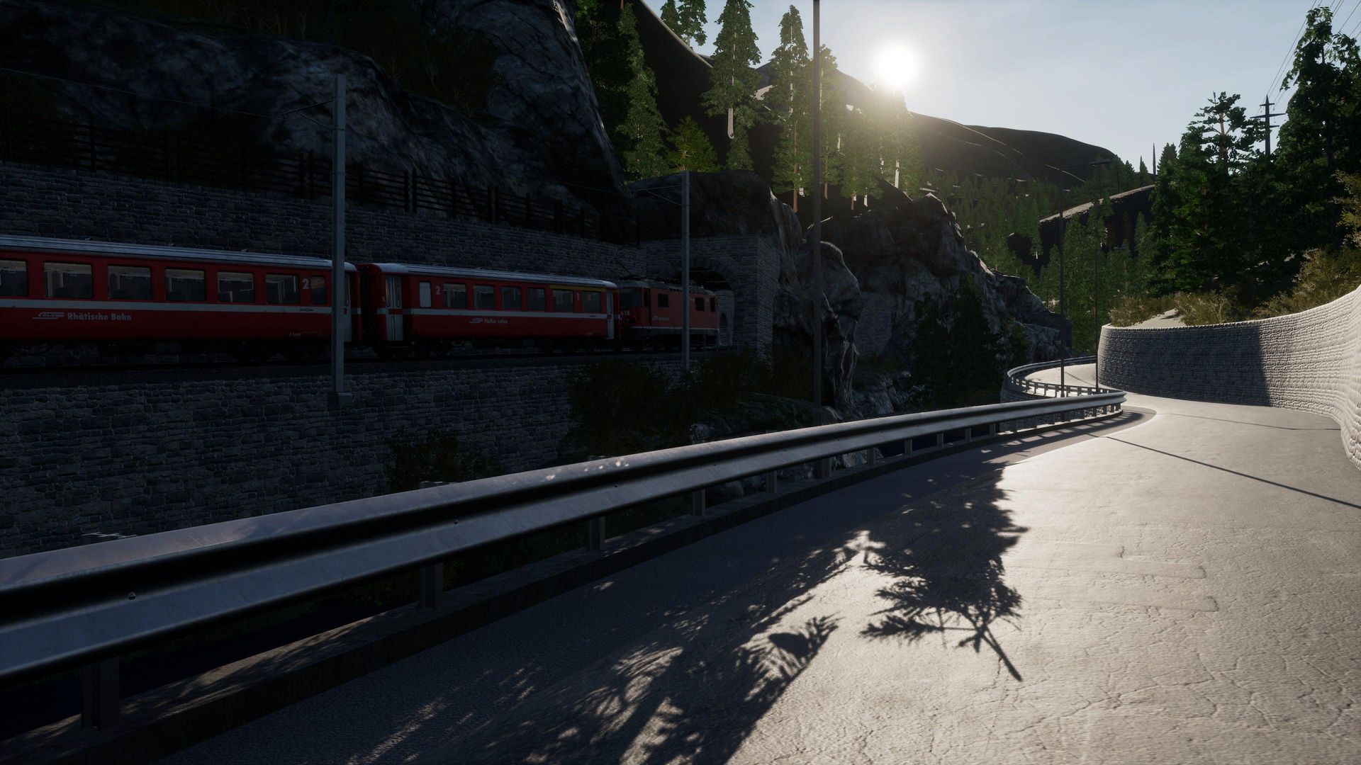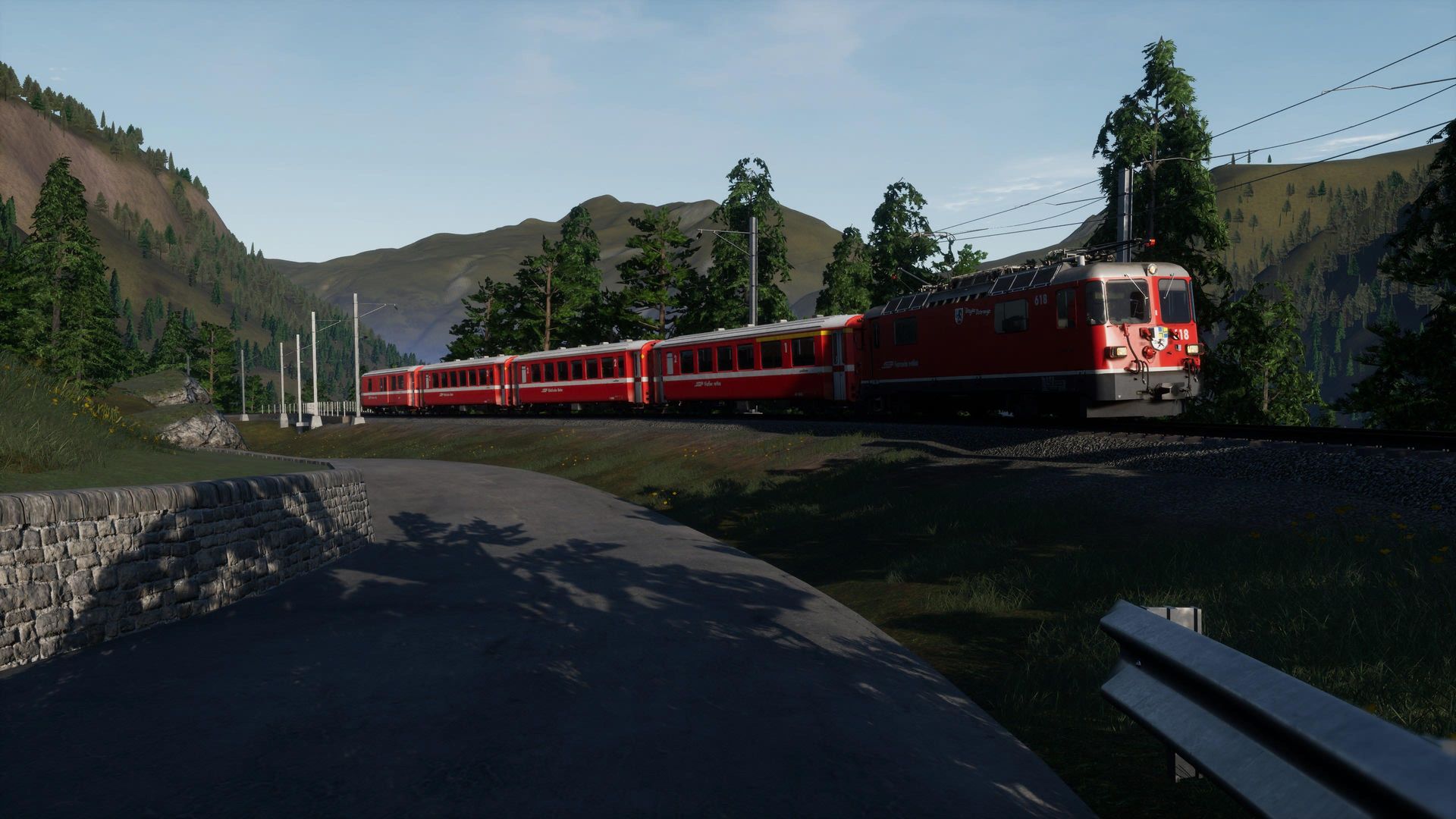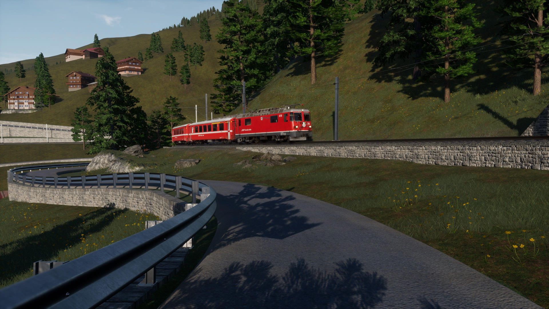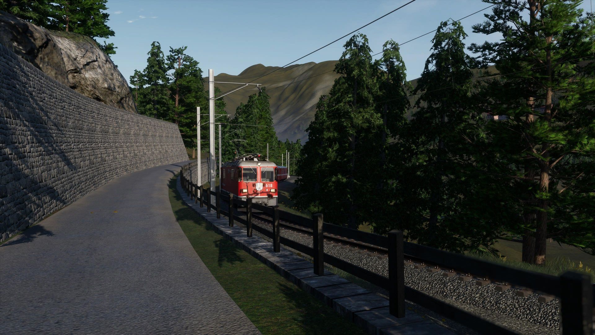 Man merkt der Strecke durchaus ihr Alter an, besonders an Details in der Ferne erkennt man, dass die Möglichkeiten der aktuellen TSW Version von neueren AddOns besser genutzt werden. Nichts desto trotz erhält man hier immer noch eine der schönsten, wenn nicht die schönste, Gebirgsstrecke für Train Sim World.