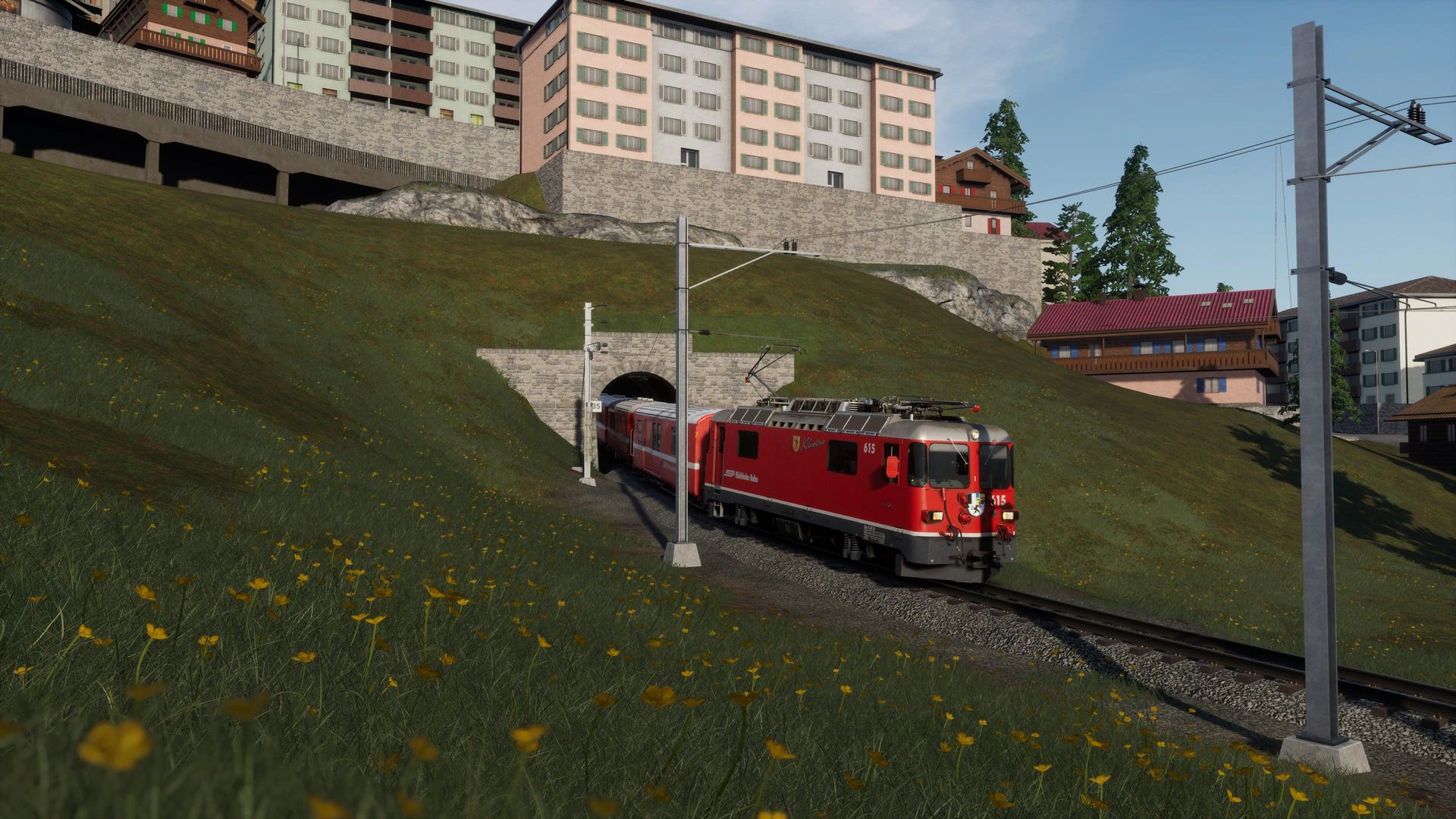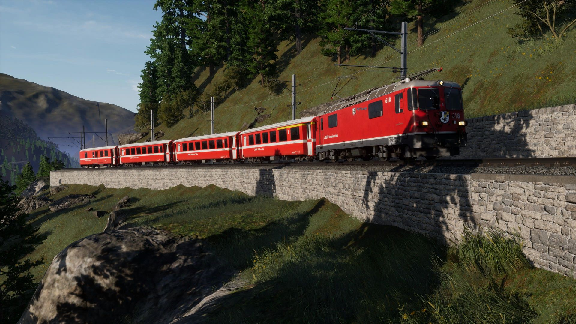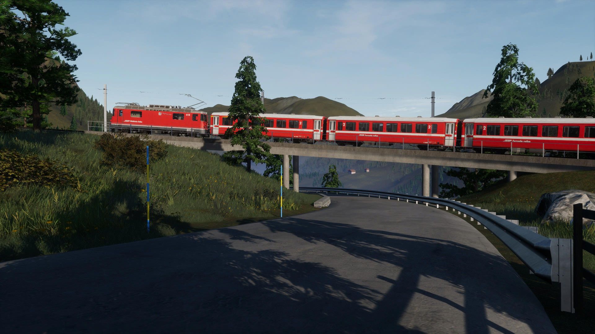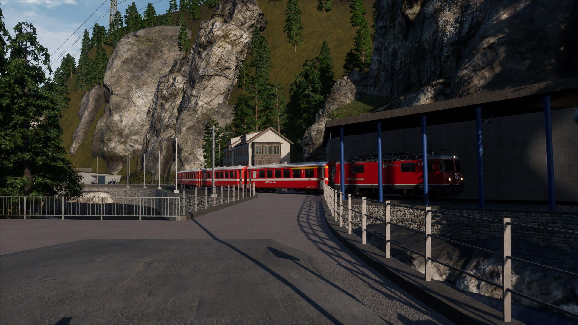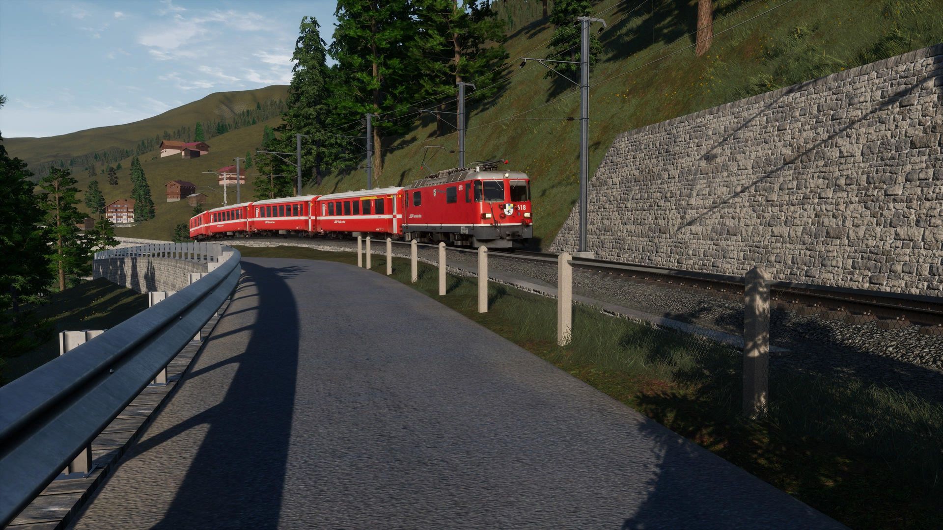 Man merkt der Strecke durchaus ihr Alter an, besonders an Details in der Ferne erkennt man, dass die Möglichkeiten der aktuellen TSW Version von neueren AddOns besser genutzt werden. Nichts desto trotz erhält man hier immer noch eine der schönsten, wenn nicht die schönste, Gebirgsstrecke für Train Sim World.